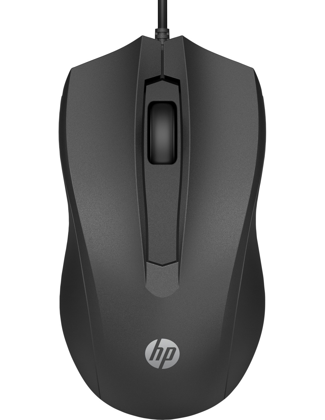 HP Ratón con cable 100. Factor de forma: Ambidextro. Tecnología de detección de movimientos: Óptico, Interfaz del dispositivo: USB tipo A, Resolución de movimiento: 1600 DPI, Tipo de botones: Botones presionados, Cantidad de botones: 3, Tipo de desplazamiento: Rueda. Fuente de energía: Cable. Color del producto: Negro