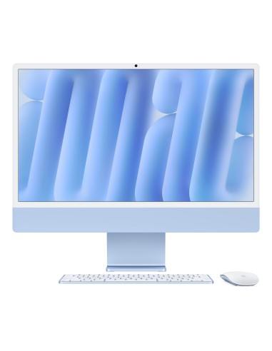 Apple iMac . Tipo de producto: PC todo en uno. Diagonal de la pantalla: 59,7 cm (23.5"), Tipo HD: 4.5K Ultra HD, Resolución de la pantalla: 4480 x 2520 Pixeles. Familia de procesador: Apple M. Memoria interna: 16 GB. Capacidad total de almacenaje: 256 GB, Unidad de almacenamiento: SSD. Modelo de adaptador gráfico incorporado: Apple GPU. Cámara incorporada. Sistema operativo instalado: macOS Sequoia. Color del producto: Azul