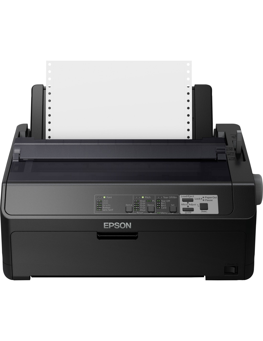 Epson FX-890II. Máxima velocidad de impresión: 612 carácteres por segundo, Resolución máxima: 240 x 144 DPI, Velocidad de impresión máxima (Borrador): 463 carácteres por segundo. Tamaño máximo de impresión: A4 (210 x 297 mm), Tipos de papel: Sobres, Cortar rango de espesores de lámina: 0,12 - 0,46 mm. Color del producto: Negro, Tamaño de buffer: 128 KB, Nivel de presión acústica (impresión): 55 dB. Interfaz estándar: Paralelo, USB 2.0. Cabezal de impresora: 9 pines, Dirección de impresión: Bidireccional, Durabilidad del cabezal de impresión: 400 millón de caracteres