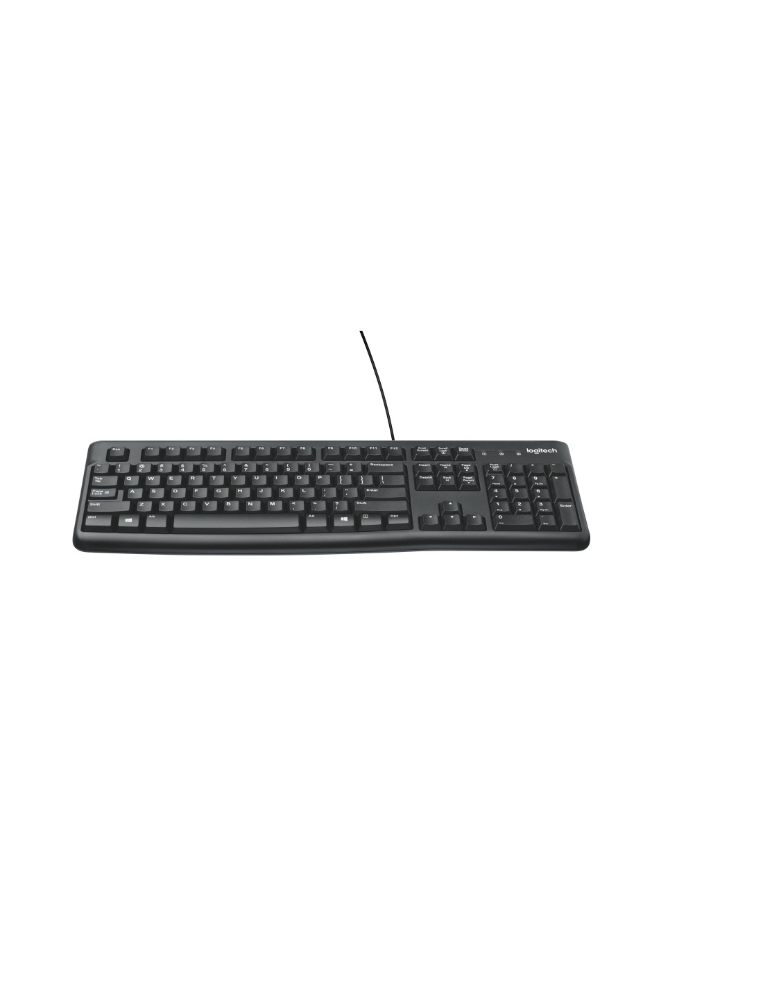 Logitech Keyboard K120 for Business. Formato del teclado: Completo (100%). Estilo de teclado: Derecho. Tecnología de conectividad: Alámbrico, Interfaz del dispositivo: USB, Diseño de teclado: QWERTY. Longitud de cable: 1,5 m. Uso recomendado: Oficina. Color del producto: Negro