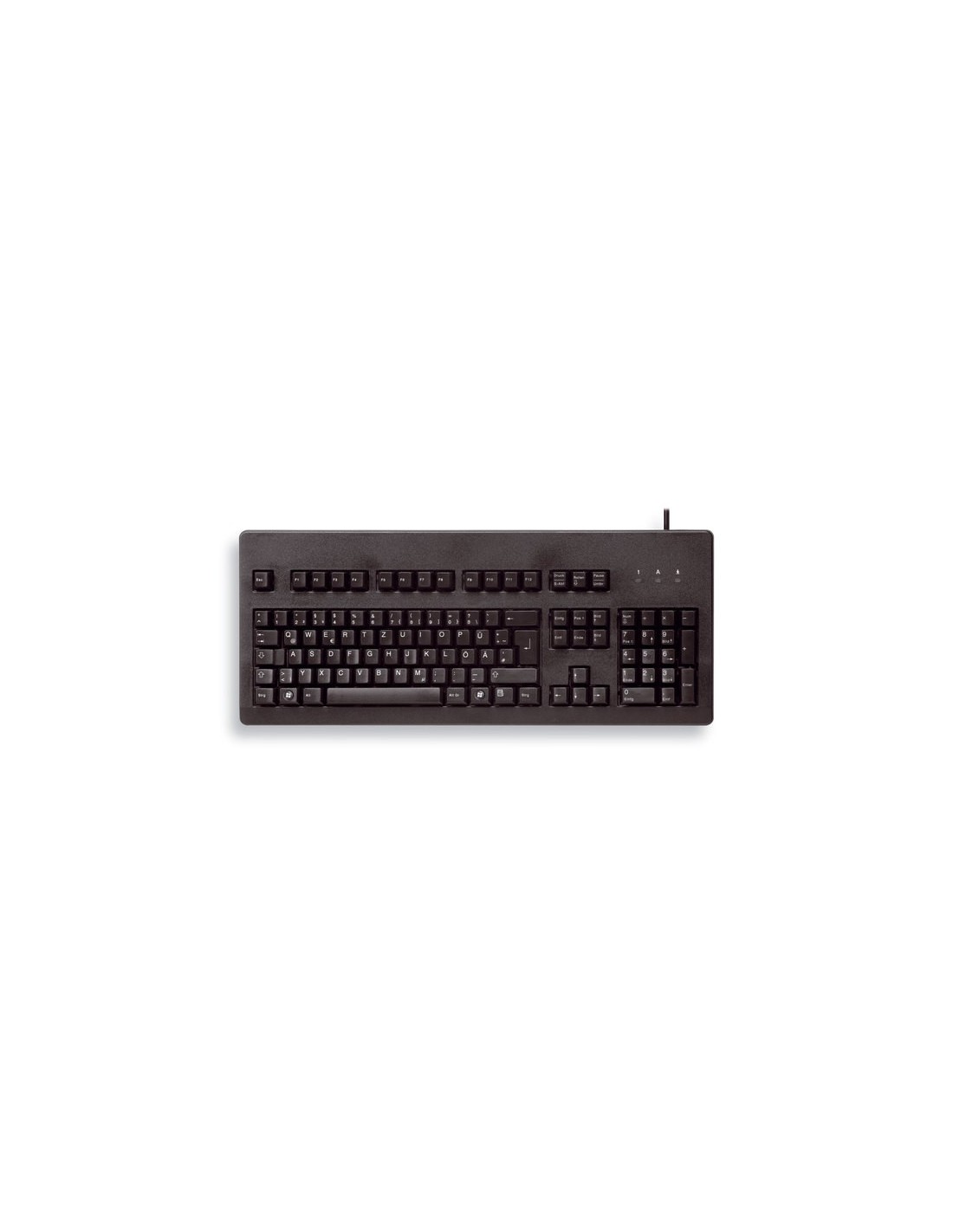 CHERRY G80-3000. Formato del teclado: Completo (100%). Estilo de teclado: Derecho. Tecnología de conectividad: Alámbrico, Interfaz del dispositivo: PS/2, Diseño de teclado: QWERTY, Teclado, cantidad de teclas: 105. Longitud de cable: 1,75 m. Uso recomendado: Hogar. Color del producto: Negro