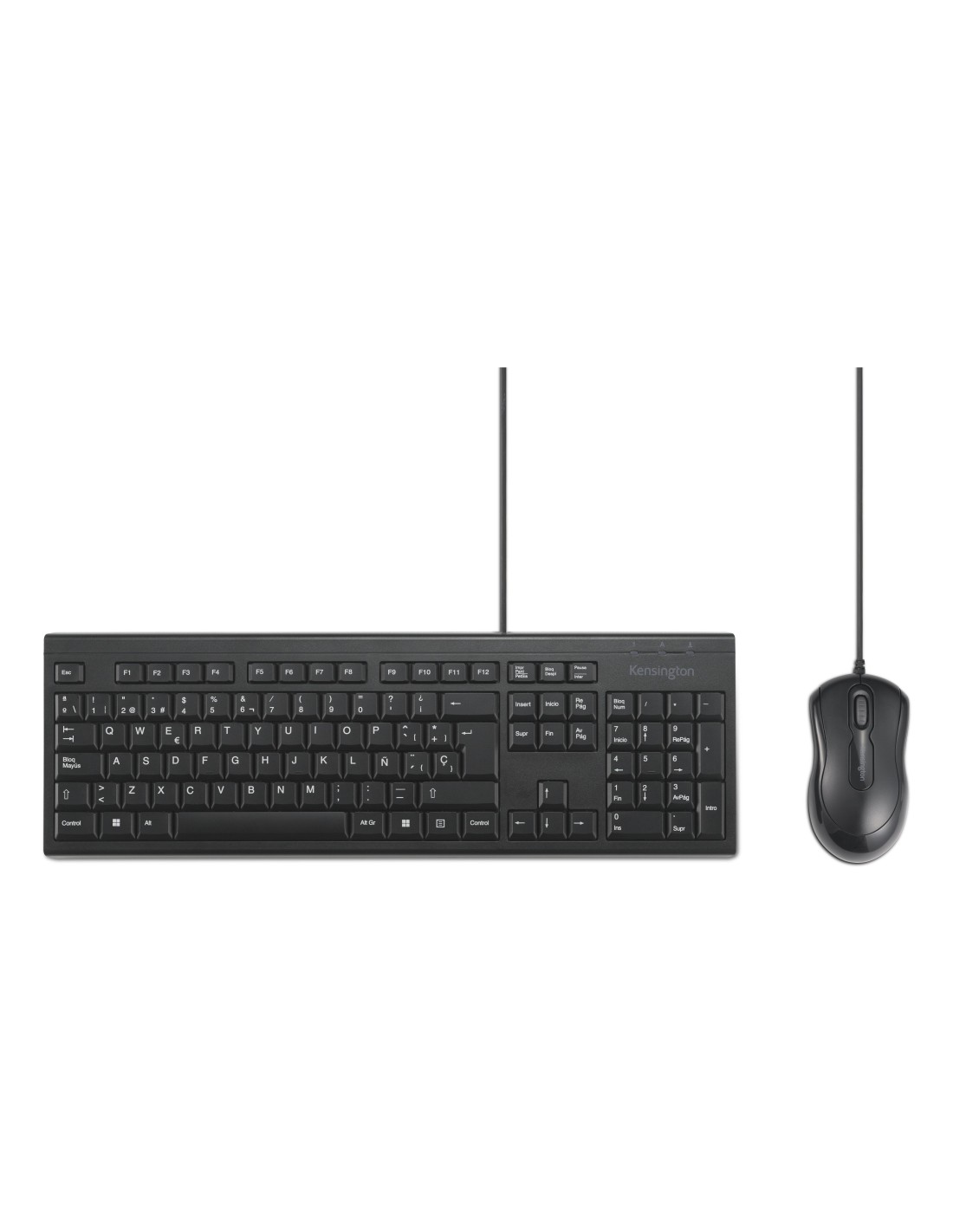 Kensington Kit de teclado y ratón con cable KM100 EQ, Alámbrico, USB, Interruptor de membrana, QWERTY, Negro, Ratón incluido