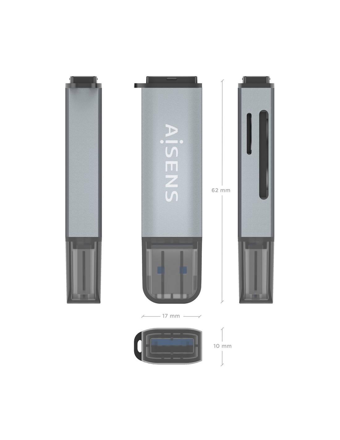 AISENSAISENS Lector De Tarjetas SD, Micro SD, MMC, Rs-MMC, MMC Micro, USB-A, Gris, MMC, MMCmicro, MicroSD (TransFlash), RS-MMC, Gris, USB 3.2 Gen 1 (3.1 Gen 1) Type-A, 17 mm, 62 mm, 10 mm