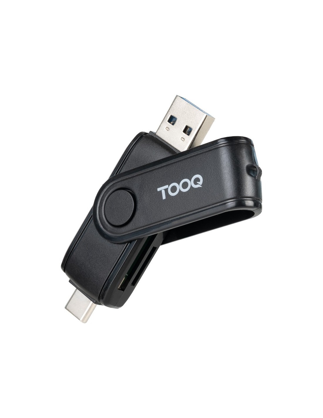 TOOQTooQ Lector de Tarjetas USB (USB-C 2.0 + USB A 3.0), SD/TF, Color Negro, MicroSD (TransFlash), SD, Negro, 5 Mbit/s, 71 mm, 21 mm, 14 mm