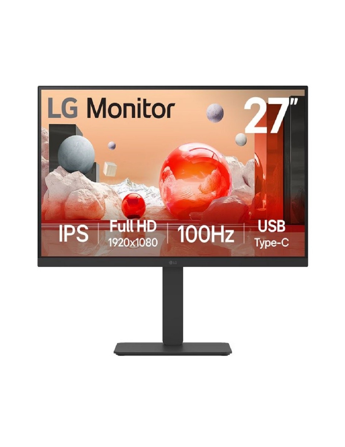 LG 27BA650-B. Diagonal de la pantalla: 68,6 cm (27"), Resolución de la pantalla: 1920 x 1080 Pixeles, Tipo HD: Full HD, Tecnología de visualización: LCD, Tiempo de respuesta: 5 ms, Relación de aspecto nativa: 16:9, Ángulo de visión, horizontal: 178°, Ángulo de visión, vertical: 178°. Altavoces incorporados. Conector USB incorporado, Versión de conector USB: 3.2 Gen 2 (3.1 Gen 2). montaje VESA, Ajustes de altura. Color del producto: Negro