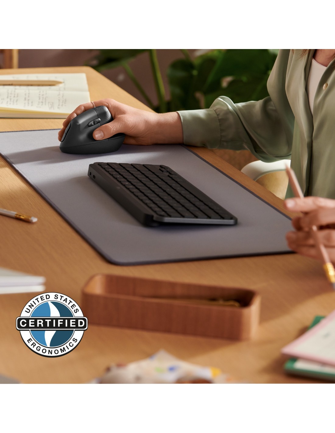 Logitech Lift for Business, mano derecha, Diseño vertical, Óptico, RF Wireless + Bluetooth, 4000 DPI, Grafito