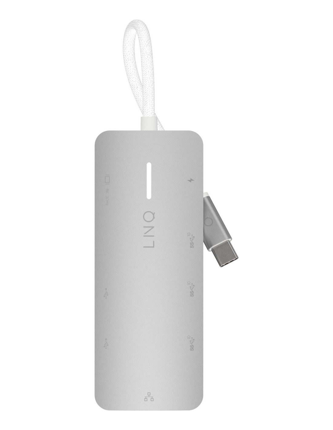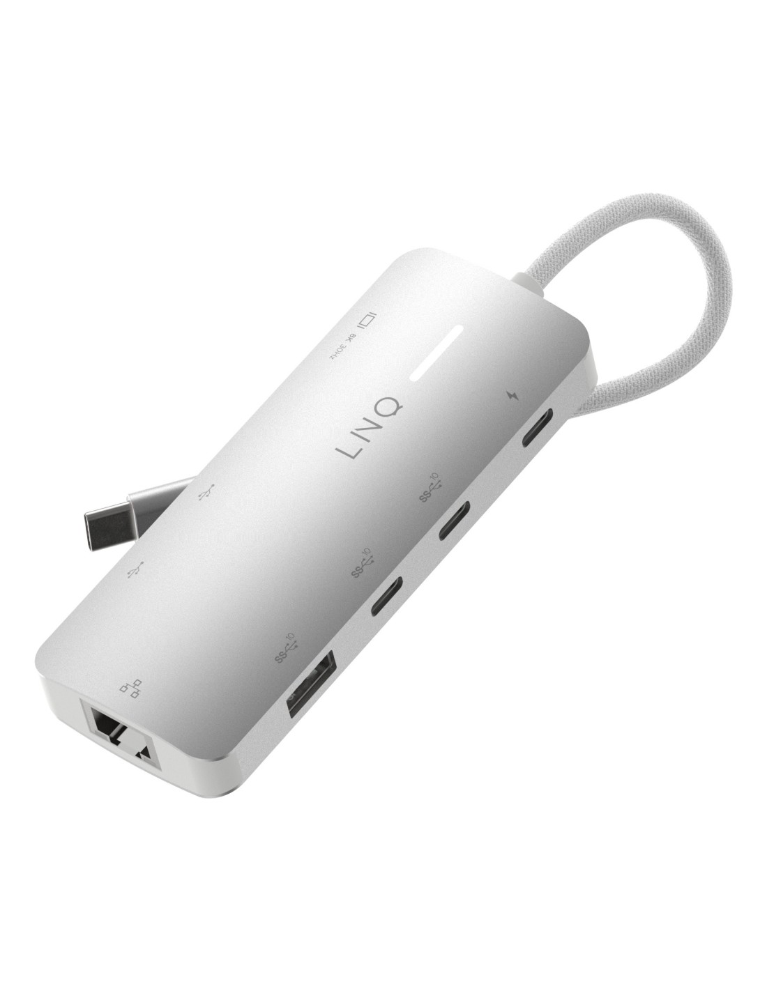 LINQ 8in1 8K PRO USB-C Multiport Hub 140W, Alámbrico, USB 3.2 Gen 2 (3.1 Gen 2) Type-C, 140 W, 10,100,1000,2500 Mbit/s, Gris, Blanco, 10 Gbit/s