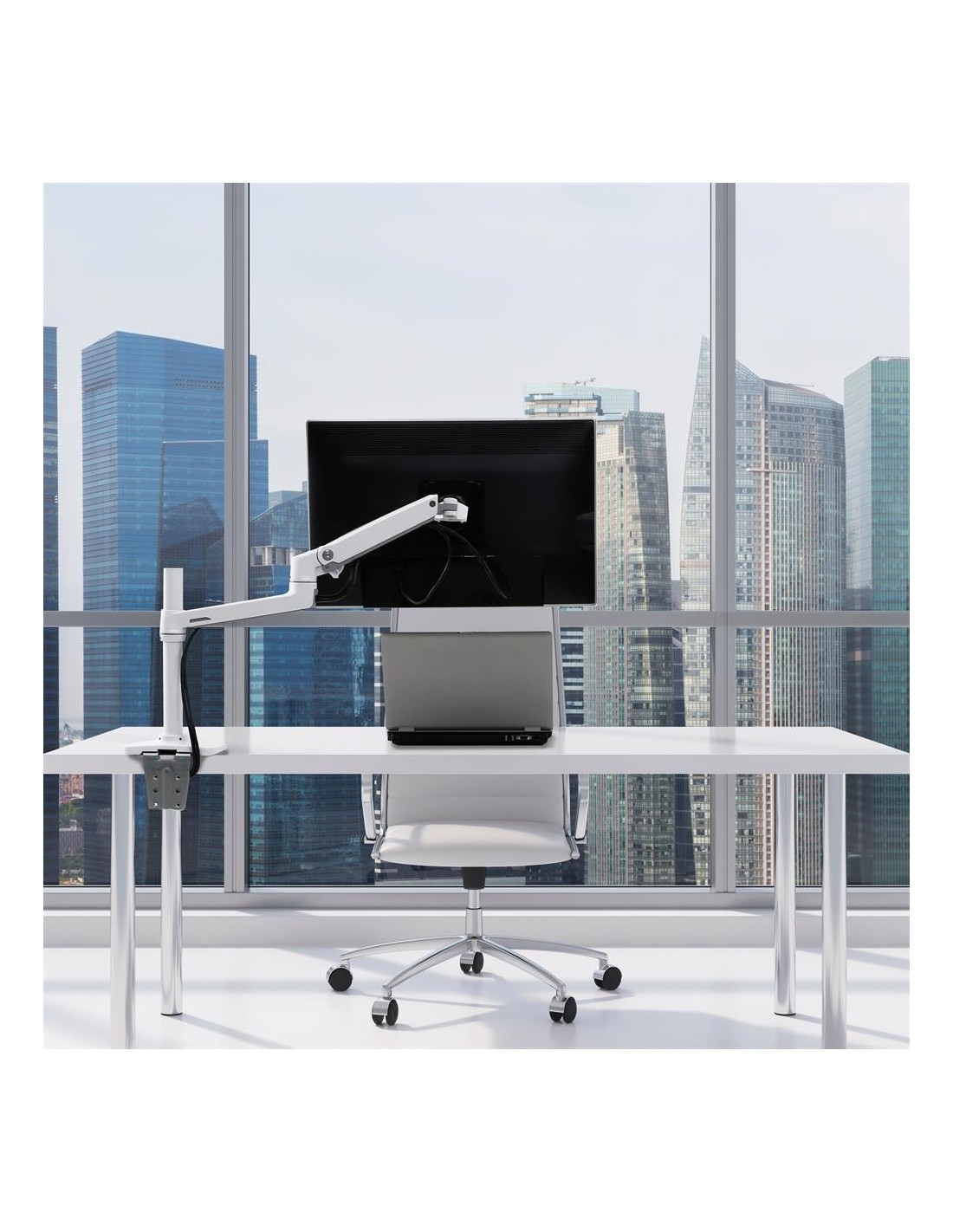 Ergotron LX Series 45-537-216. Montaje: Abrazadera, Capacidad máxima de peso: 11,3 kg, Tamaño máximo de pantalla: 81,3 cm (32"), Compatibilidad con interfaz de montaje (min): 75 x 75 mm, Compatibilidad con interfaz de montaje (max): 100 x 100 mm. Ajustes de altura, Ángulo de inclinación: 70 - 5°. Color del producto: Blanco