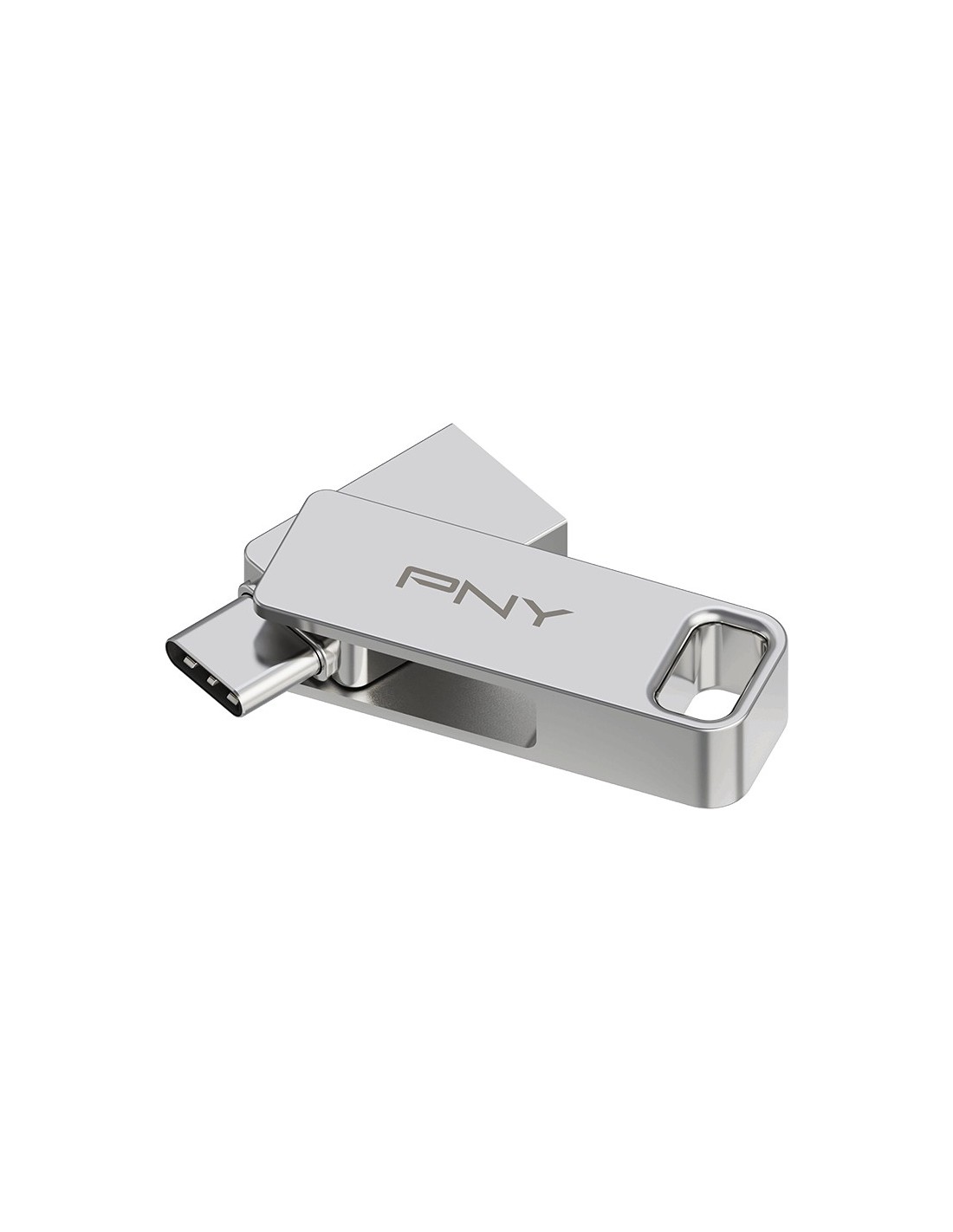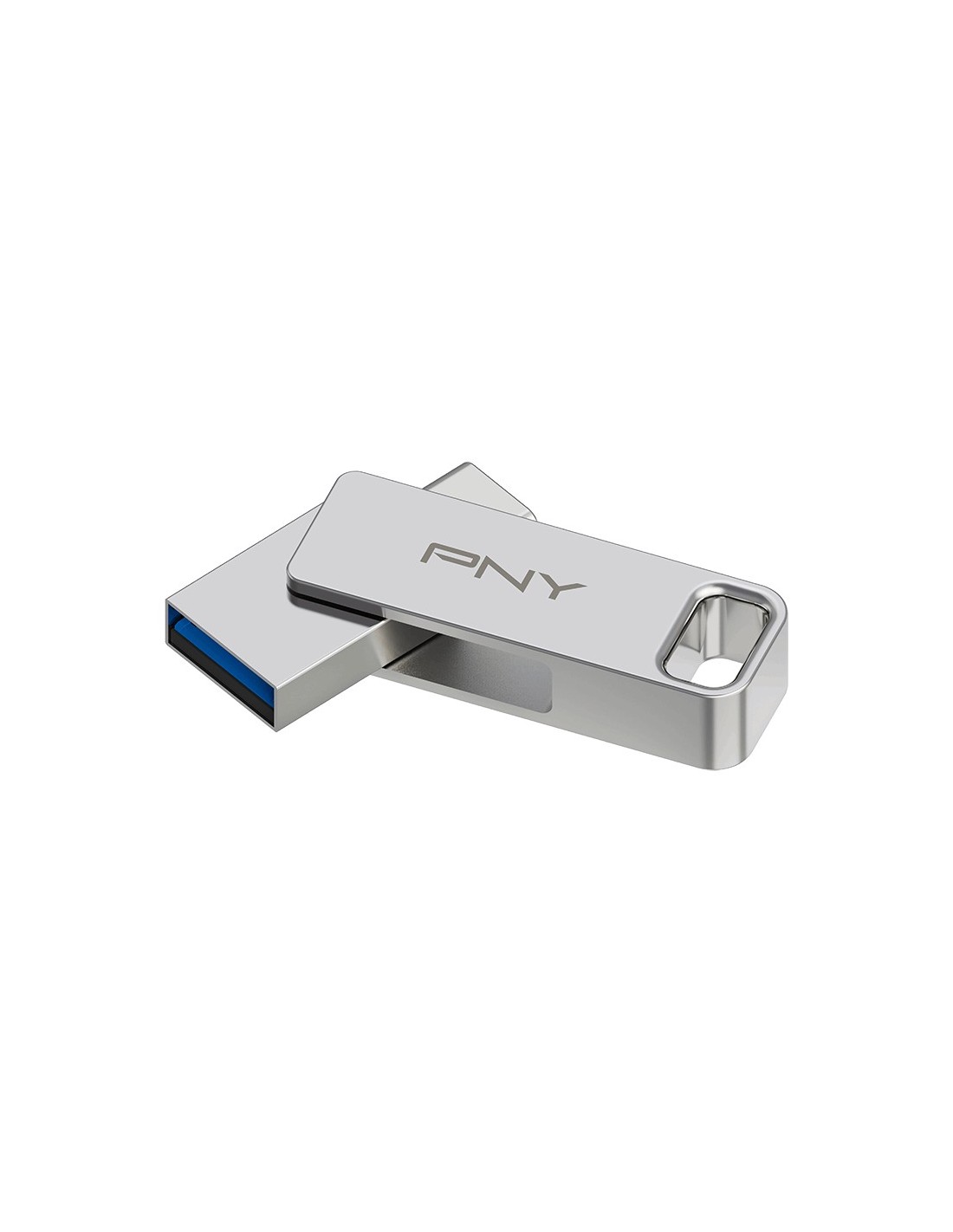 PNY DUO LINK. Capacidad: 64 GB, Interfaz del dispositivo: USB Type-A / USB Type-C, Versión USB: 3.2 Gen 1 (3.1 Gen 1), Velocidad de lectura: 200 MB/s. Factor de forma: Girar, Color del producto: Acero inoxidable