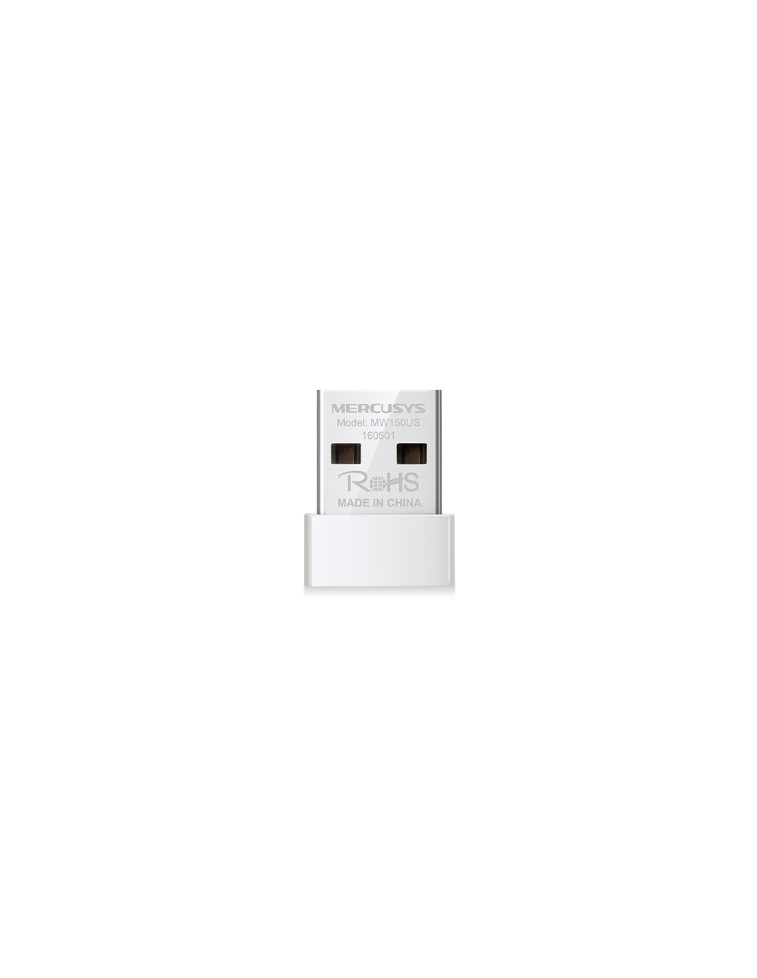 Mercusys MW150US. Tecnología de conectividad: Inalámbrico, Interfaz de host: USB, Interfaz: USB. Rango máximo de transferencia de datos: 150 Mbit/s, Estándar Wi-Fi: Wi-Fi 4 (802.11n), Banda Wi-Fi: Banda única (2,4 GHz). Color del producto: Blanco