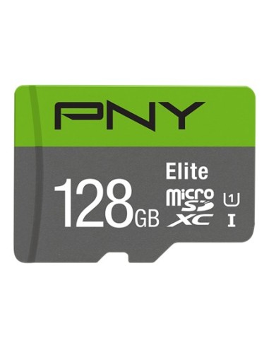 PNY Elite. Capacidad: 128 GB, Tipo de tarjeta flash: MicroSDXC, Clase de memoria flash: Clase 10, Tipo de memoria interna: UHS-I, Clase de velocidad UHS: Class 1 (U1), Clase de velocidad de vídeo: V10. Color del producto: Verde, Gris