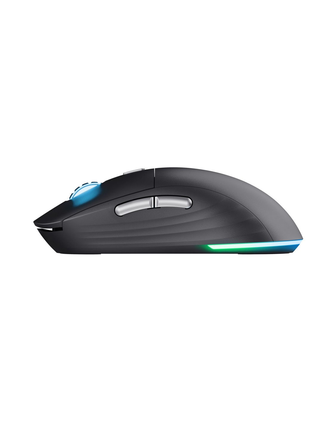 Trust GXT 926 Redex II. Factor de forma: mano derecha. Tecnología de detección de movimientos: Laser, Interfaz del dispositivo: RF inalámbrico, Resolución de movimiento: 10000 DPI, Tipo de botones: Botones presionados, Cantidad de botones: 6, Tipo de desplazamiento: Rueda, Aceleración (máx.): 20 G. Iluminación de color: Multi. Fuente de energía: Baterías/Cable. Color del producto: Negro