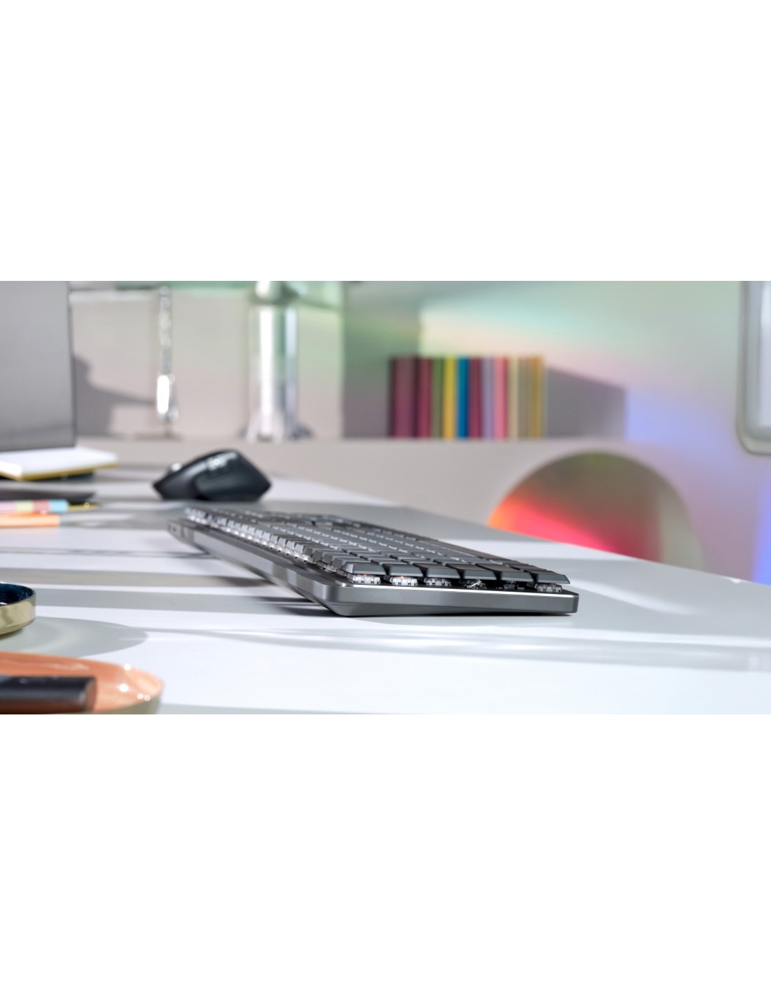 Logitech 920-010756. Formato del teclado: Completo (100%). Estilo de teclado: Derecho. Tecnología de conectividad: Inalámbrico, Interfaz del dispositivo: RF Wireless + Bluetooth, Interruptor del teclado: Interruptor mecánico, Diseño de teclado: QWERTY. Tipo de retroiluminación: LED. Longitud de cable: 1 m. Uso recomendado: Oficina. Color del producto: Grafito