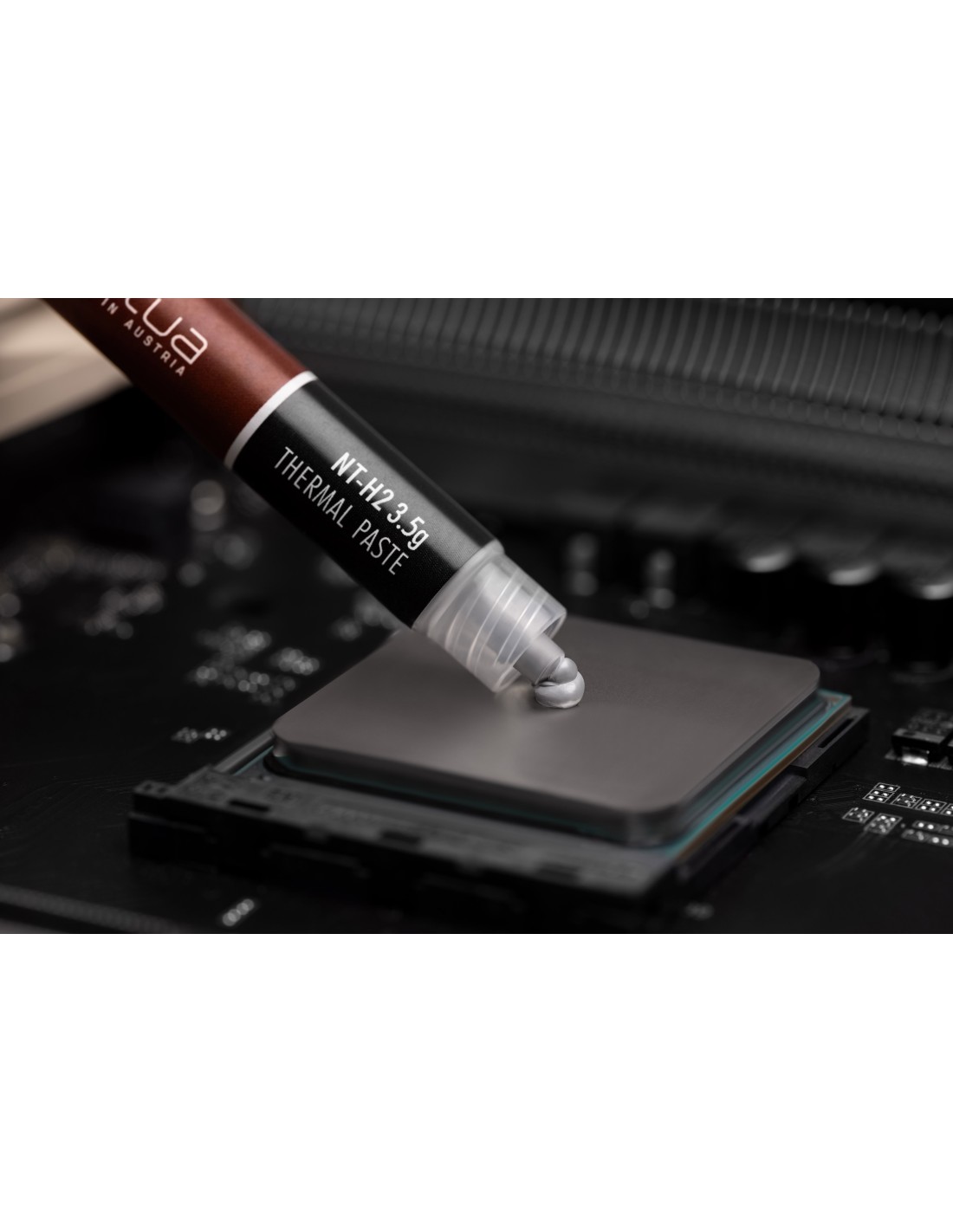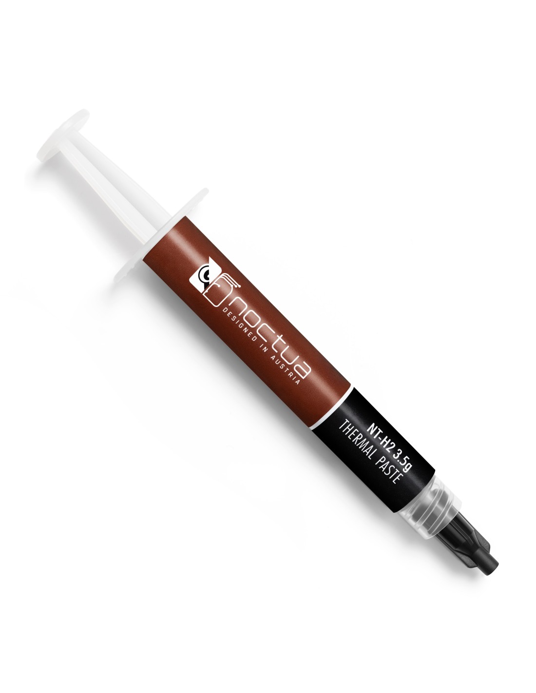Noctua NT-H2. Tipo: Pasta térmica, Densidad: 2,81 g/cm³, Color del producto: Gris. Volumen: 1,2 ml, Peso: 3,5 g. Cantidad por paquete: 1 pieza(s), Ancho del paquete: 70 mm, Profundidad del paquete: 30 mm. Ancho de la caja principal: 322 mm, Longitud de la caja: 335 mm, Alto de la caja principal: 312 mm