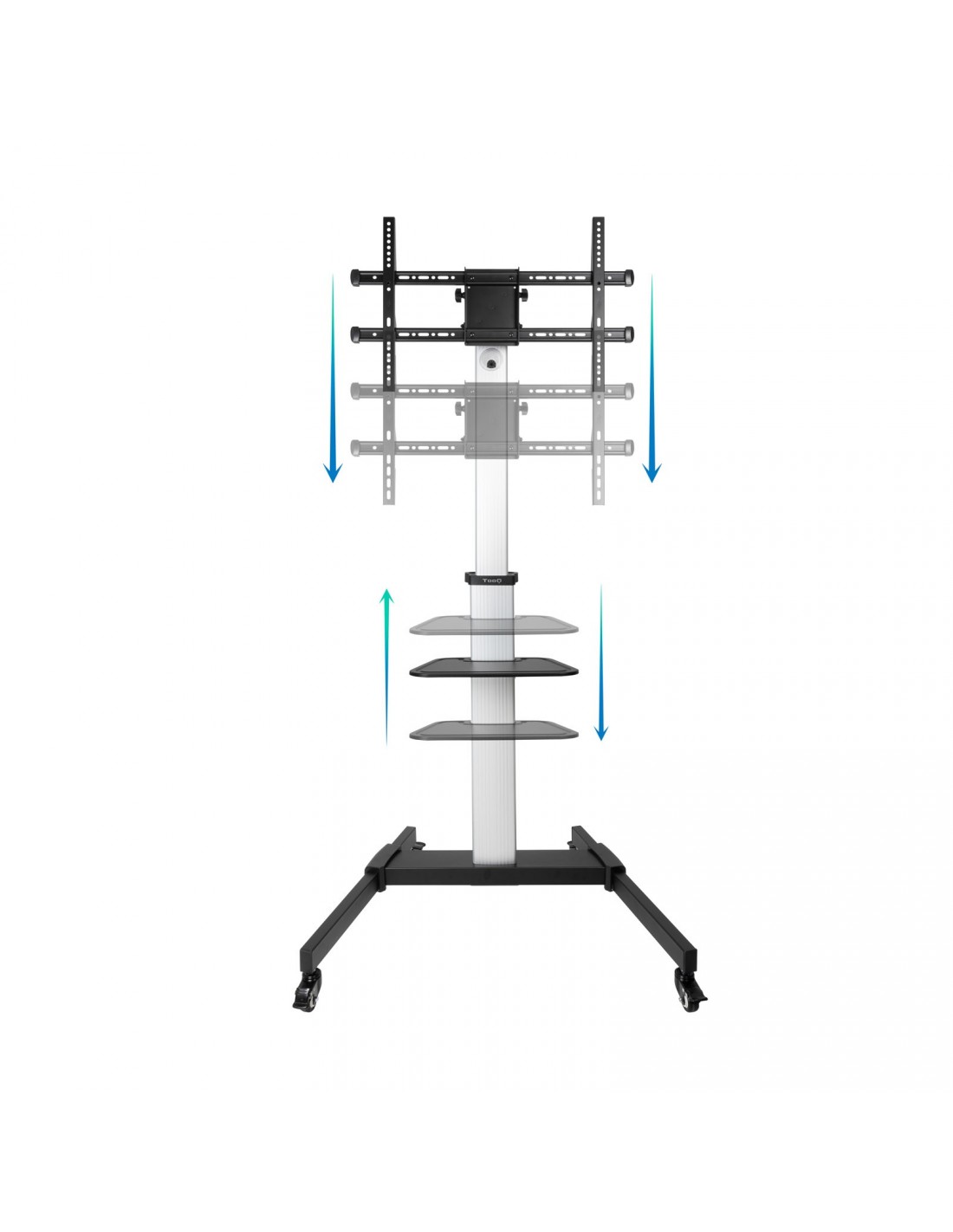 TOOQTooQ Hera Soporte de Suelo de Aluminio con Ruedas para Pantalla 37"-86", 94 cm (37"), 2,18 m (86"), 200 x 200 mm, 600 x 400 mm, -10 - 5°, Negro, Plata