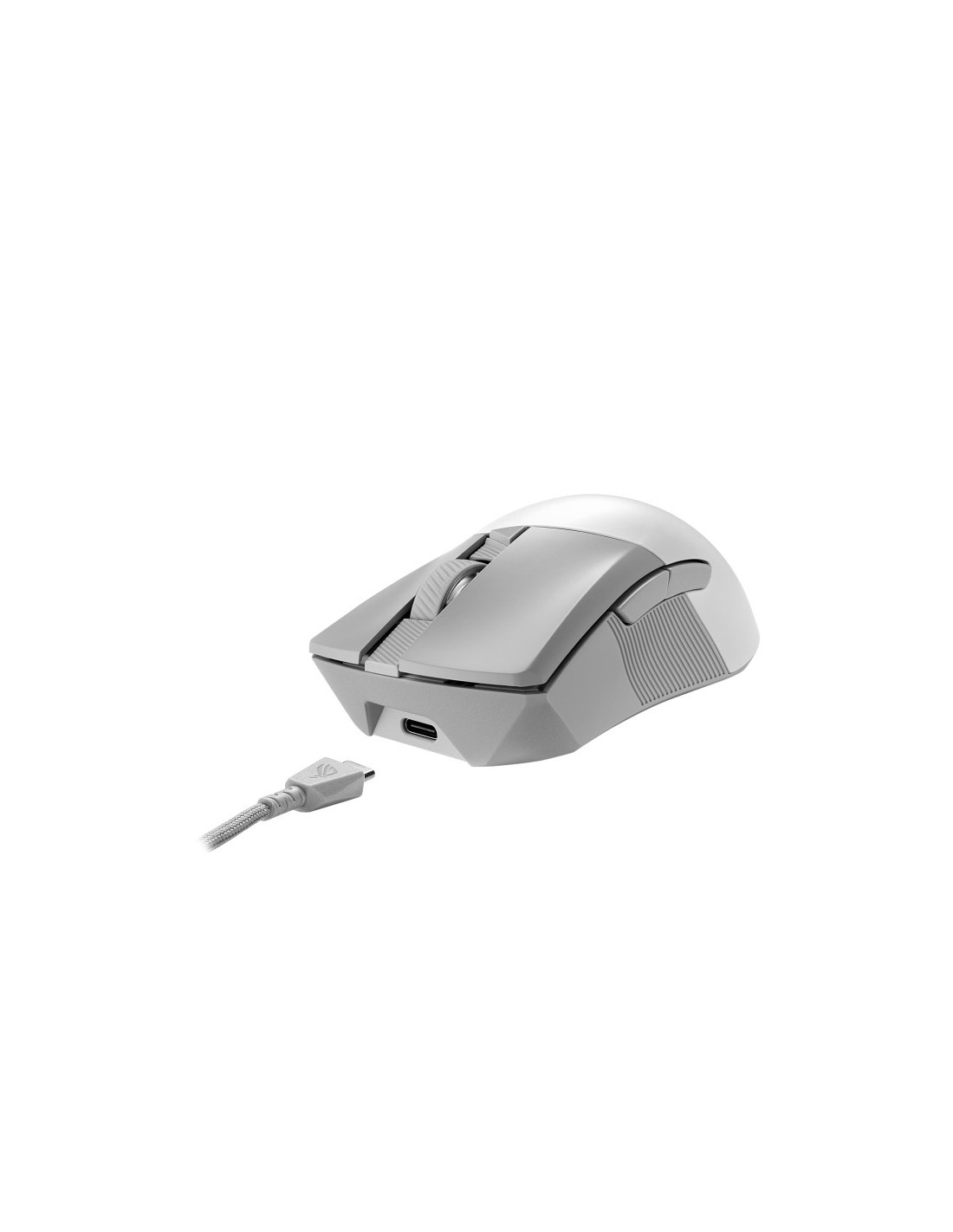ASUS ROG Gladius III Wireless Aimpoint White. Factor de forma: mano derecha. Tecnología de detección de movimientos: Óptico, Interfaz del dispositivo: RF Wireless + Bluetooth + USB Type-A, Resolución de movimiento: 36000 DPI, Tipo de botones: Botones presionados, Cantidad de botones: 6, Tipo de desplazamiento: Rueda, Aceleración (máx.): 50 G. Fuente de energía: Baterías/Cable. Color del producto: Blanco