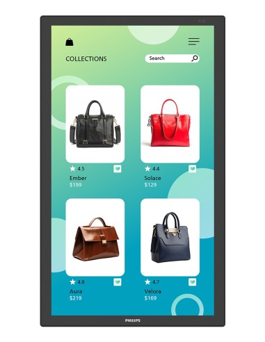 Philips 3000 series 32BDL3751T/00. Diseño de producto: Panel plano interactivo. Diagonal de la pantalla: 80 cm (31.5"), Tecnología de visualización: LCD, Resolución de la pantalla: 1920 x 1080 Pixeles, Brillo de pantalla: 350 cd / m², Tipo HD: Full HD, Pantalla táctil. Wifi. Horas de funcionamiento (horas/días): 24/7. Sistema operativo instalado: Android. Color del producto: Negro