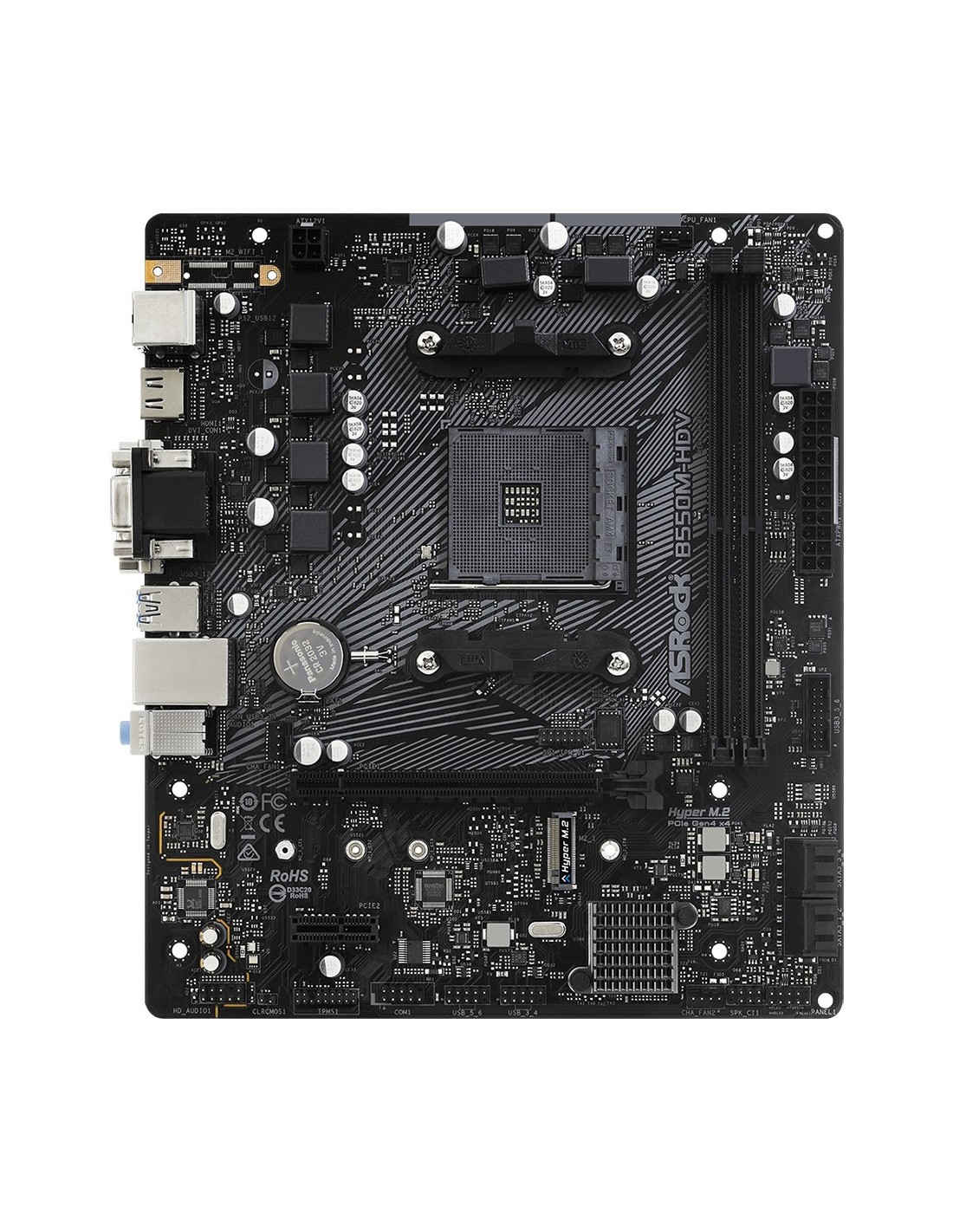 PLACA ASROCK B550M-HDV,AMD,AM4,B550,2DDR4,64GB,VGA+DVI+HDMI,GBLAN,6SATA3+1M.2,4USB3.2,MATX