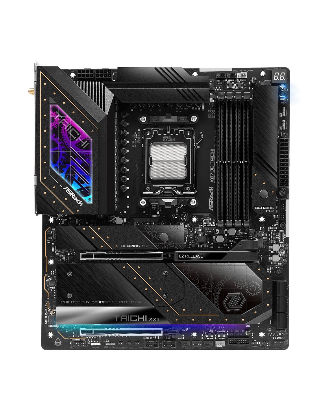 PLACA ASROCK X870E TAICHI,AMD,AM5,X870E,4DDR5,256GB,2USB4 TYPE-C+HDMI,6SATA3,4M.2,2USB4,7USB3.2,1USB TYPE-C,LAN5GB,WIFI7+BT,
