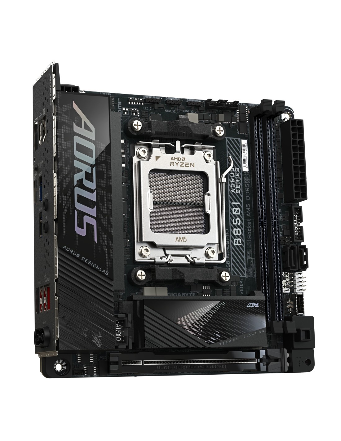GIGABYTE B850I AORUS PRO Placa Base - Compatible con procesadores AMD Ryzen Serie 9000, VRM digital de 8+2+1 fases, hasta 8400MHz DDR5 (OC), 1xPCIe 5.0 + 1xPCIe 4.0 M.2, 2.5LAN, WIFI 7, USB 3.2 Gen 2. Fabricante de procesador: AMD, Socket de procesador: Zócalo AM5, Procesador compatible: AMD Ryzen 7000 Series, AMD Ryzen 8000 Series, AMD Ryzen 9000 Series. tipos de memoria compatibles: DDR5-SDRAM, Memoria interna máxima: 128 GB, Tipo de ranuras de memoria: DIMM. Interfaces de disco de almacenamiento soportados: M.2, SATA III, Tipos de unidades de almacenamiento admitidas: HDD & SSD, Niveles RAID: 0, 1, 10. Máxima resolución: 4096 x 2160 Pixeles. Tipo de interfaz ethernet: Gigabit Ethernet, Estándar Wi-Fi: Wi-Fi 7 (802.11be), Wi-Fi estándares: 802.11a, 802.11b, 802.11g, Wi-Fi 4 (802.11n), Wi-Fi 5 (802.11ac), Wi-Fi 6 (802.11ax), Wi-Fi 6E...