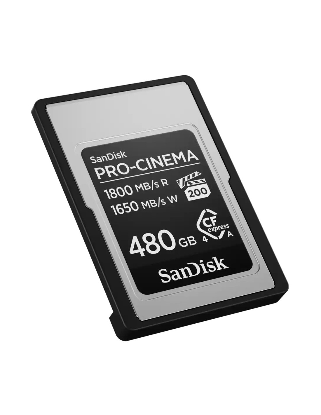 SanDisk PRO-CINEMA CFexpress Type A Card - 480GB. Capacidad: 480 GB, Tipo de tarjeta flash: CFexpress tipo A, Velocidad de lectura: 1800 MB/s, Velocidad de escritura: 1650 MB/s. Funciones de protección: Protección contra caídas, Resistente al polvo, Resistente al agua, Color del producto: Negro, Metálico