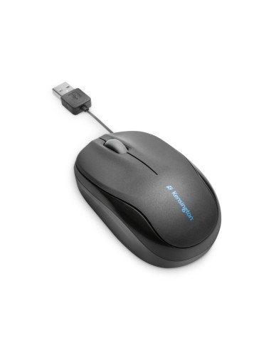 Kensington Ratón retráctil para portátiles Pro Fit. Factor de forma: Ambidextro. Tecnología de detección de movimientos: Óptico, Interfaz del dispositivo: USB tipo A, Resolución de movimiento: 1000 DPI, Tipo de botones: Botones presionados, Cantidad de botones: 3, Tipo de desplazamiento: Rueda. Fuente de energía: Cable. Color del producto: Negro