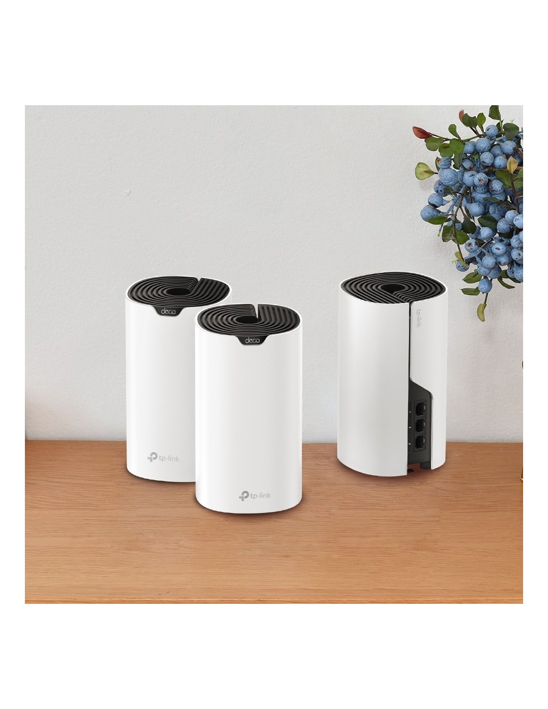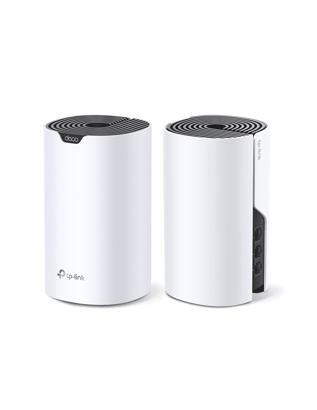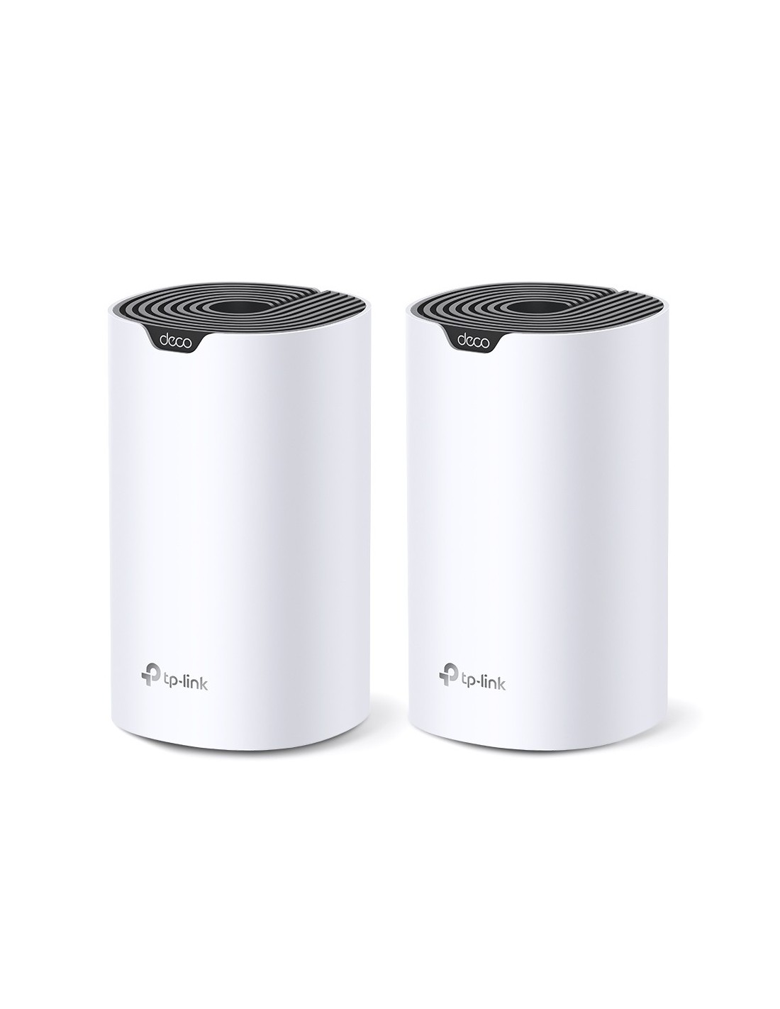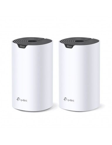 TP-Link DECO S7 (2-Pack). Color del producto: Blanco, Tipo de antena: Interno, Tipo de producto: Enrutador de malla. Banda Wi-Fi: Doble banda (2,4 GHz / 5 GHz), Estándar Wi-Fi: Wi-Fi 5 (802.11ac), Wi-Fi estándares: 802.11a, 802.11b, 802.11g, Wi-Fi 4 (802.11n), Wi-Fi 5 (802.11ac). Frecuencia del procesador: 1,2 GHz, Seguridad con cortafuegos: SPI Firewall, Potencia de transmisión (CE): 20 - 23 dbm. Ancho: 162,3 mm, Profundidad: 90,7 mm, Altura: 90,7 mm. Número de productos incluidos: 2 pieza(s), Number of units included: 2 pieza(s)