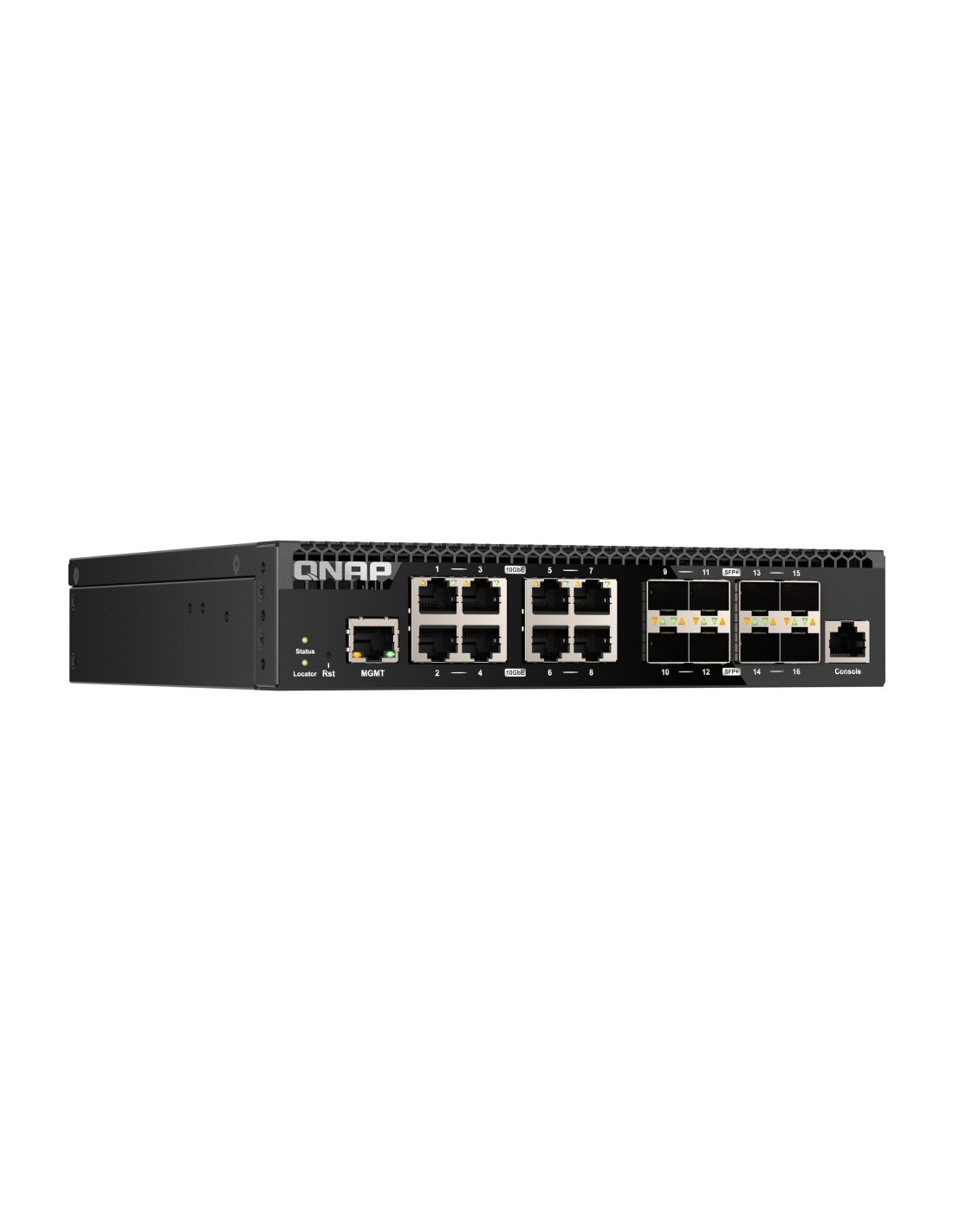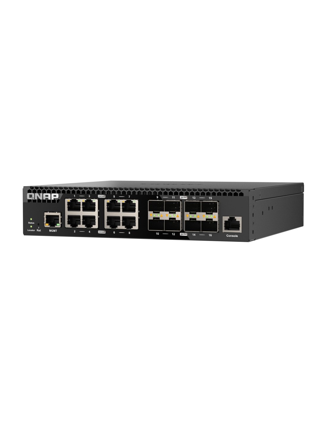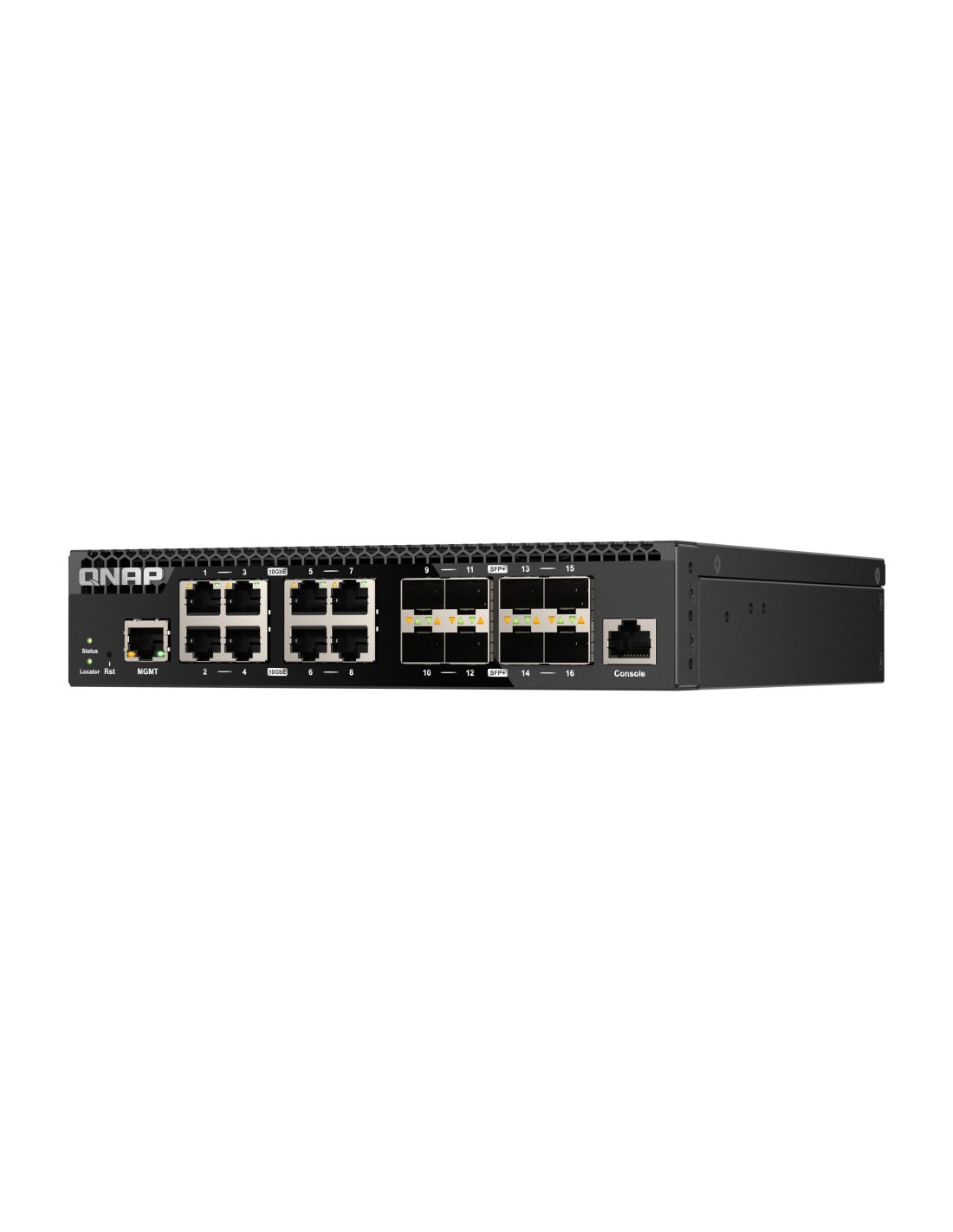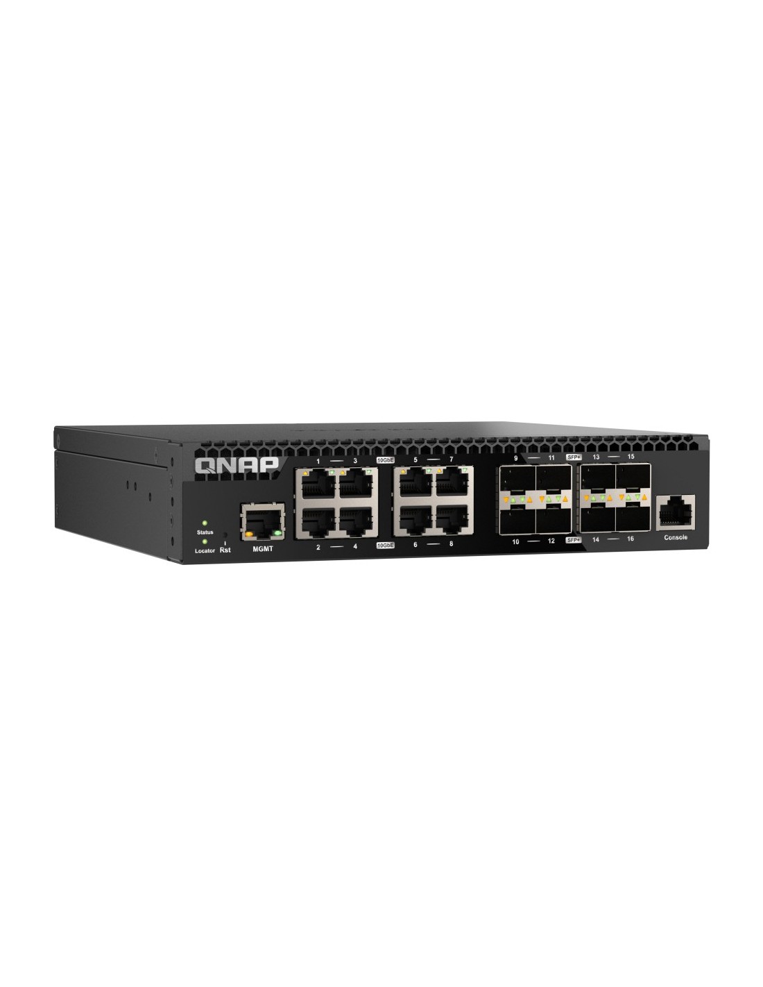 QNAP QSW-M3216R-8S8T. Tipo de interruptor: Gestionado, Capa del interruptor: L2/L3. Puertos tipo básico de conmutación RJ-45 Ethernet: 10G Ethernet (100/1000/10000), Cantidad de puertos básicos de conmutación RJ-45 Ethernet: 8, Número de módulos SFP+ instalados: 8, Puerto de consola: RJ-45. Tabla de direcciones MAC: 16000 entradas, Capacidad de conmutación: 320 Gbit/s. Estándares de red: IEEE 802.3, IEEE 802.3ab, IEEE 802.3ae, IEEE 802.3p, IEEE 802.3u, IEEE 802.3x, IEEE 802.3z. Montaje en rack, Factor de forma: 1U