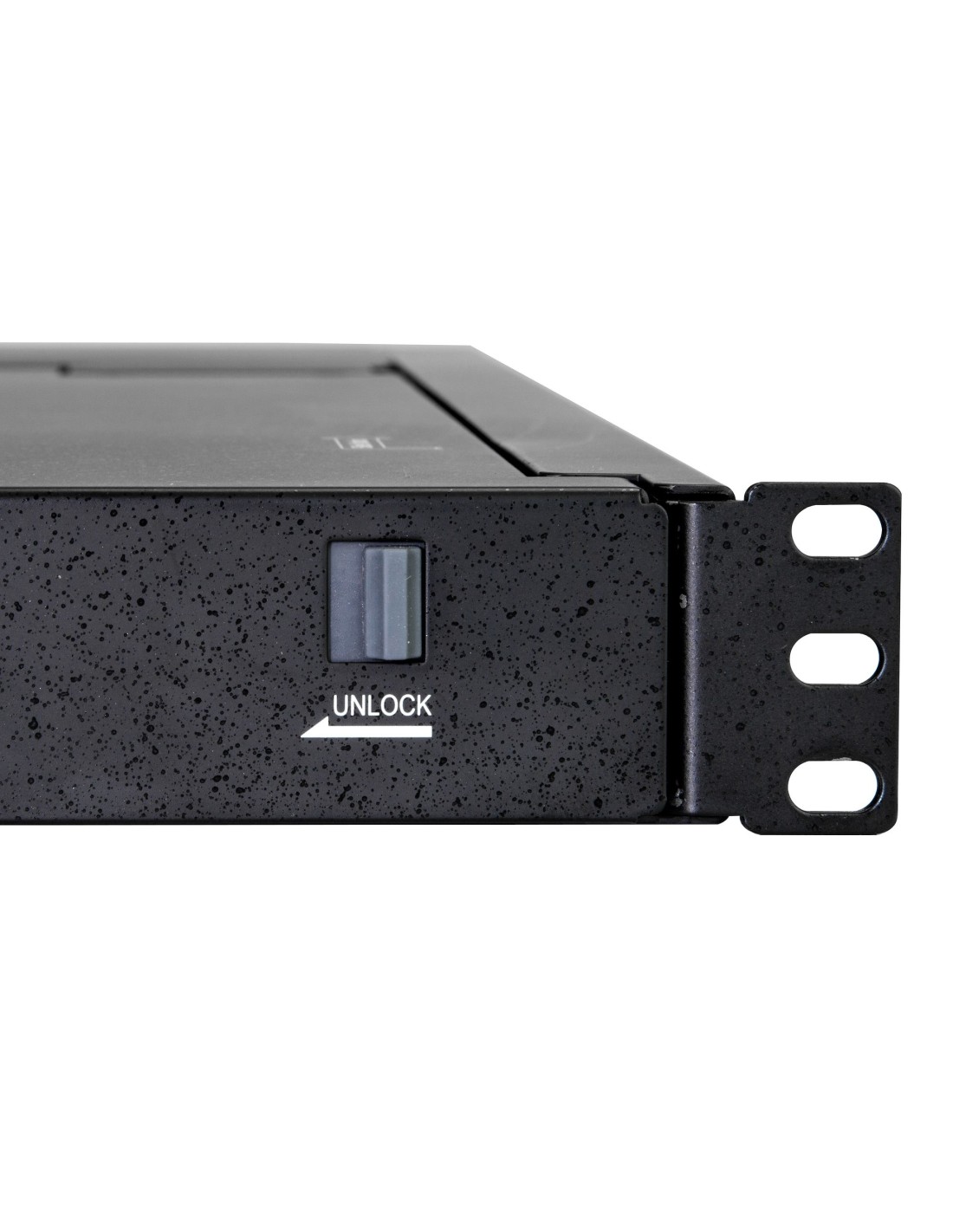 La consola de montaje en rack de 1U cuenta con un teclado integrado (QWERTY), un panel táctil para un control intuitivo y una pantalla LCD de 17 pulgadas que admite resoluciones de hasta 1280x1024.
