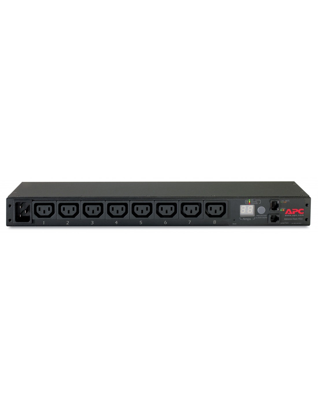 APC AP7821B. PDU tipos: Regulado, Capacidad del rack: 0U/1U, Montaje: Horizontal/Vertical. Cantidad de salidas AC: 8 salidas AC, Tipo de salida AC: C13 acoplador, Conector: C20 acoplador. Certificación: cUL, C-tick, CE, CSA, FCC 15 A, GOST, ICES-003, UL 60950, UL Listed, VCCI, VDE. Monitoreo: Corriente, Poder, Tensión. Voltaje nominal de entrada: 200-230 V, Máxima corriente: 20 A, Frecuencia de entrada AC: 50 - 60 Hz