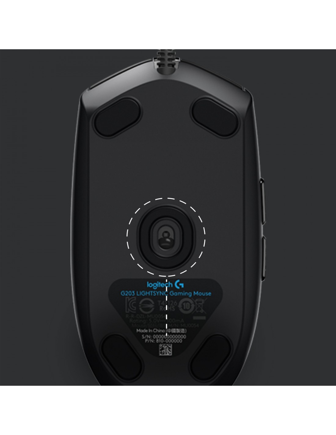 El sensor de G203 tiene una sensibilidad de hasta 8.000 dpi (puntos por pulgada). G203 te permite elegir configuraciones de sensibilidad simplemente deslizando un control en una barra de desplazamiento. Puedes definir hasta 5 niveles y pasar de uno a otro con sólo pulsar un botón. Es ideal para juegos que tienen diferentes modos o niveles que pueden requerir más control (por ejemplo, para acciones de disparo o niveles que exigen clics a toda velocidad).