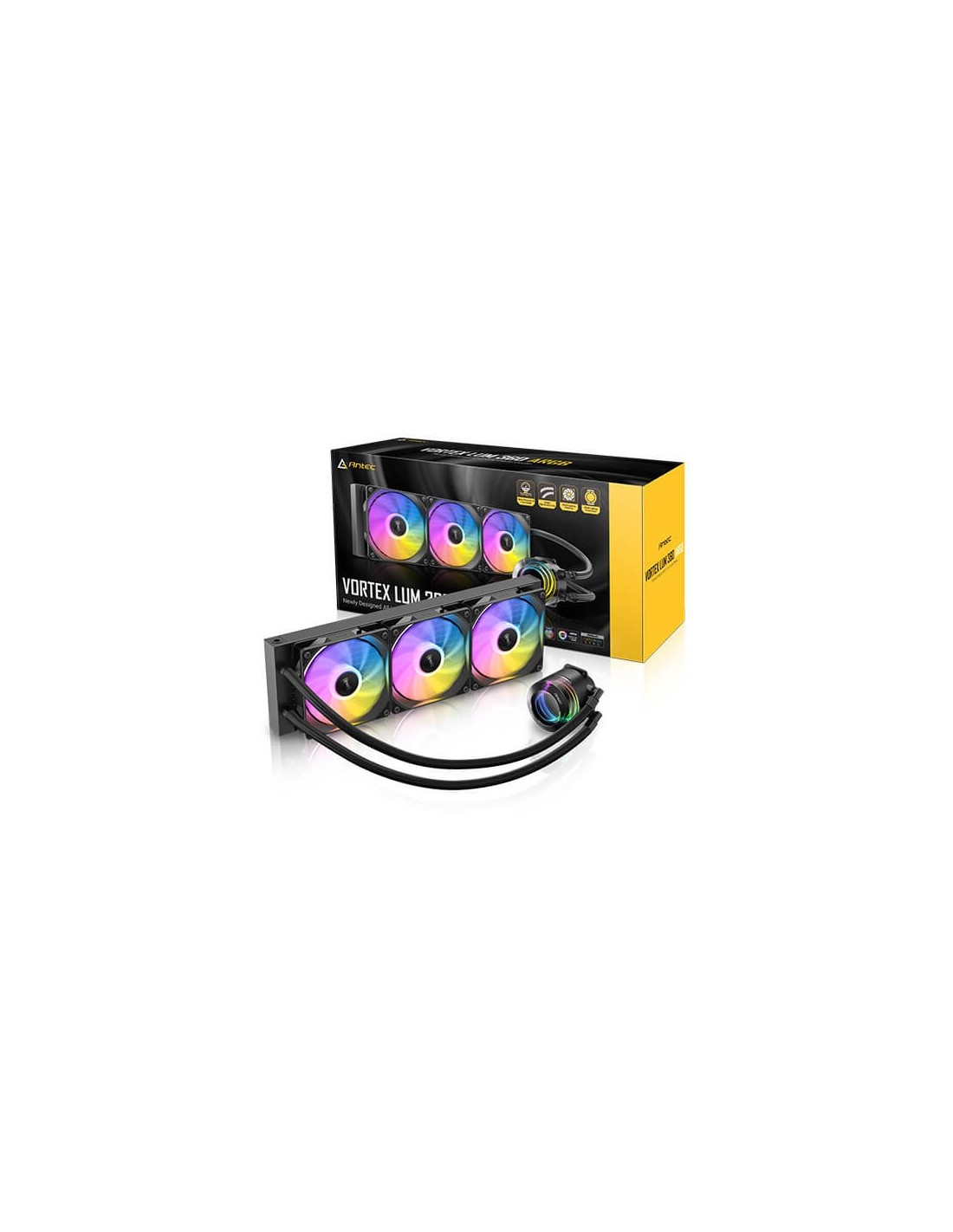 Antec Vortex Lum 360 ARGB. Tipo: Kit de refrigeración líquida, Diámetro de ventilador: 12 cm, Presión máxima de aire: 2,45 mmH2O, Tipo de soporte: Hidráulico. Color del producto: Negro