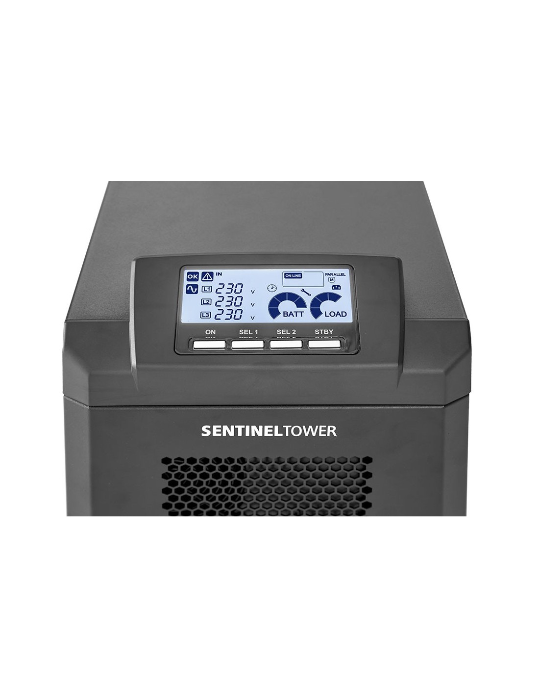 Riello Sentinel Tower. Topología UPS: Doble conversión (en línea), Capacidad de potencia de salida (VA): 10 kVA, Potencia de salida: 10000 W. Tipo de salida AC: IEC 320, Cantidad de salidas AC: 2 salidas AC, Tipo de serie de interfaz: RS-232. Tecnología de batería: Sealed Lead Acid (VRLA), Tiempo de recarga de la batería: 6 h. Factor de forma: Torre, Color del producto: Aluminio, Negro, Tipo de enfriamiento: Activo. Certificados de conformidad: RoHS, Certificación: IEC EN 62040-1; EMC IEC EN 62040-2 IEC 62040-3 VFI - SS - 111