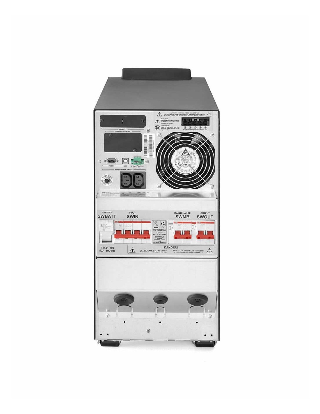 Riello Sentinel Tower. Topología UPS: Doble conversión (en línea), Capacidad de potencia de salida (VA): 10 kVA, Potencia de salida: 10000 W. Tipo de salida AC: IEC 320, Cantidad de salidas AC: 2 salidas AC, Tipo de serie de interfaz: RS-232. Tecnología de batería: Sealed Lead Acid (VRLA), Tiempo de recarga de la batería: 6 h. Factor de forma: Torre, Color del producto: Aluminio, Negro, Tipo de enfriamiento: Activo. Certificados de conformidad: RoHS, Certificación: IEC EN 62040-1; EMC IEC EN 62040-2 IEC 62040-3 VFI - SS - 111