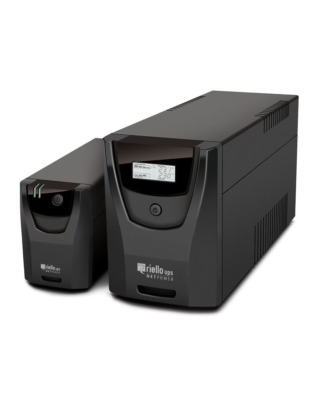 Riello Net Power. Topología UPS: Línea interactiva, Capacidad de potencia de salida (VA): 0,6 kVA, Potencia de salida: 360 W. Tipo de salida AC: C13 acoplador, Cantidad de salidas AC: 4 salidas AC, Tipo de puerto USB: USB Tipo B. Tecnología de batería: Sealed Lead Acid (VRLA), Tiempo de recarga de la batería: 8 h. Factor de forma: Torre, Color del producto: Negro, Certificación: IEC EN 62040-1; EMC IEC EN 62040-2. Ancho: 100 mm, Profundidad: 287 mm, Altura: 142 mm