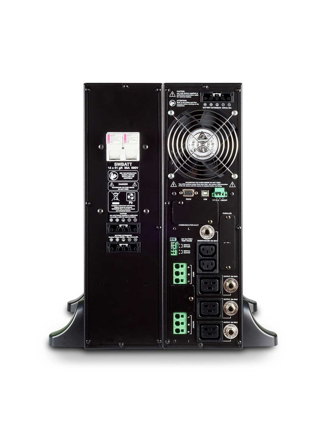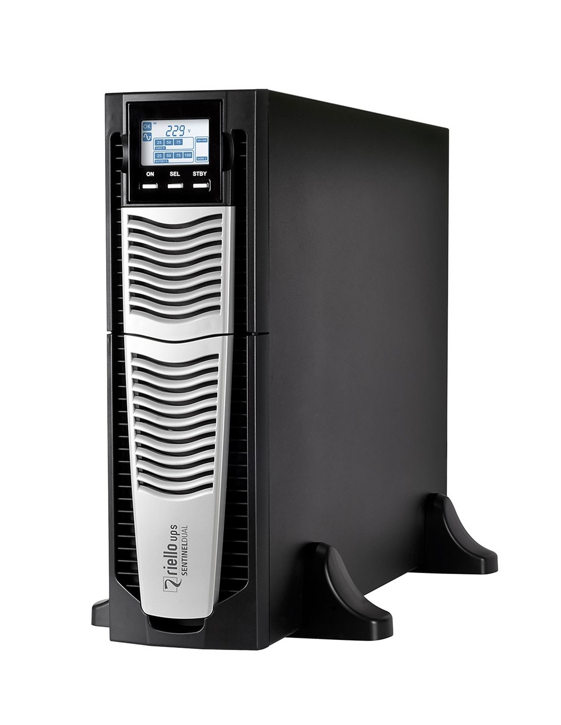 Riello Sentinel Dual SDU. Topología UPS: Doble conversión (en línea), Capacidad de potencia de salida (VA): 10 kVA, Potencia de salida: 10000 W. Tipo de salida AC: Terminal, C13 acoplador, C19 acoplador, IEC 320, Cantidad de salidas AC: 5 salidas AC, Tipo de serie de interfaz: RS-232. Tecnología de batería: Sealed Lead Acid (VRLA). Factor de forma: Montaje en rack/Torre o Montaje en bastidor/Torre, Color del producto: Negro, Plata, Capacidad del rack: 3U. Certificación: EN 62040-2, 2014/30/EU