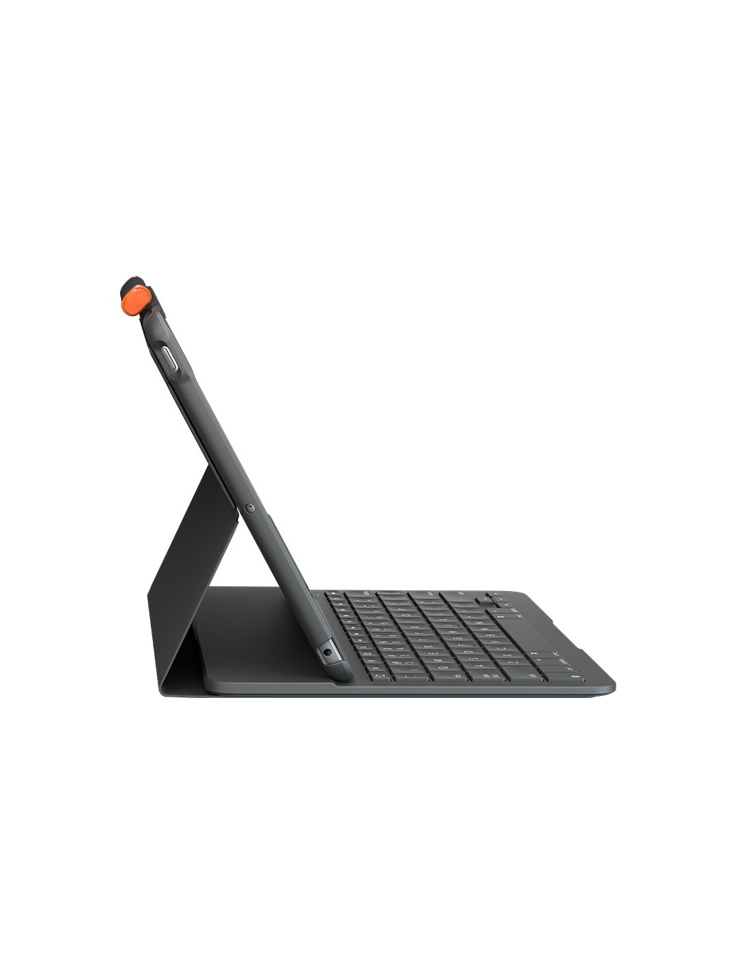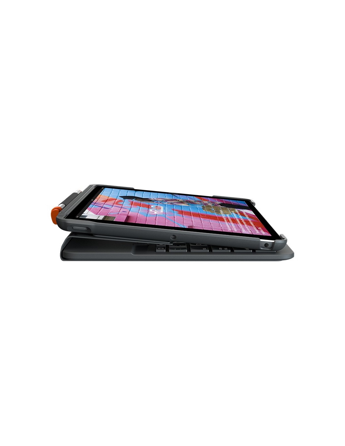 Logitech Slim Folio. Diseño de teclado: QWERTY, Idioma del teclado: Español, Separación entre teclas: 1,7 cm. Marca compatible: Apple, Compatibilidad: iPad (7th gen), Color del producto: Grafito. Tecnología de conectividad: Inalámbrico, Interfaz del dispositivo: Bluetooth. Fuente de energía: Batería, Tecnología de batería: Ión de litio, Capacidad de batería: 220 mAh. Sistemas operativos móviles soportados: iOS