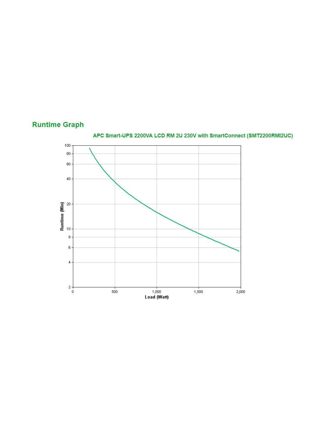 APC Smart-UPS 2200VA LCD RM 2U 230V with SmartConnect. Topología UPS: Línea interactiva, Capacidad de potencia de salida (VA): 2,2 kVA, Potencia de salida: 1980 W. Cantidad de salidas AC: 9 salidas AC, Tipo de puerto USB: USB tipo A, Tipo de serie de interfaz: RJ-45. Tecnología de batería: Sealed Lead Acid (VRLA), Vida útil de la batería (máx.): 5 año(s), Tiempo de recarga de la batería: 3 h. Factor de forma: Montaje en rack o Montaje en bastidor, Color del producto: Negro, Metálico, Capacidad del rack: 2U. Ancho: 432 mm, Profundidad: 683 mm, Altura: 86 mm