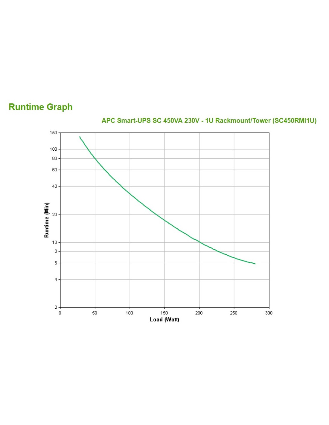 APC Smart-UPS. Topología UPS: Línea interactiva, Capacidad de potencia de salida (VA): 0,45 kVA, Potencia de salida: 280 W. Tipo de salida AC: C13 acoplador, Conector: C14 acoplador, Cantidad de salidas AC: 4 salidas AC. Tecnología de batería: Sealed Lead Acid (VRLA), Capacidad de la batería: 108 VAh, Tiempo típico de respaldo a carga completa: 5,9 min. Factor de forma: Montaje en rack/Torre o Montaje en bastidor/Torre, Color del producto: Gris, Capacidad del rack: 1U. Ancho: 432 mm, Profundidad: 383 mm, Altura: 44 mm