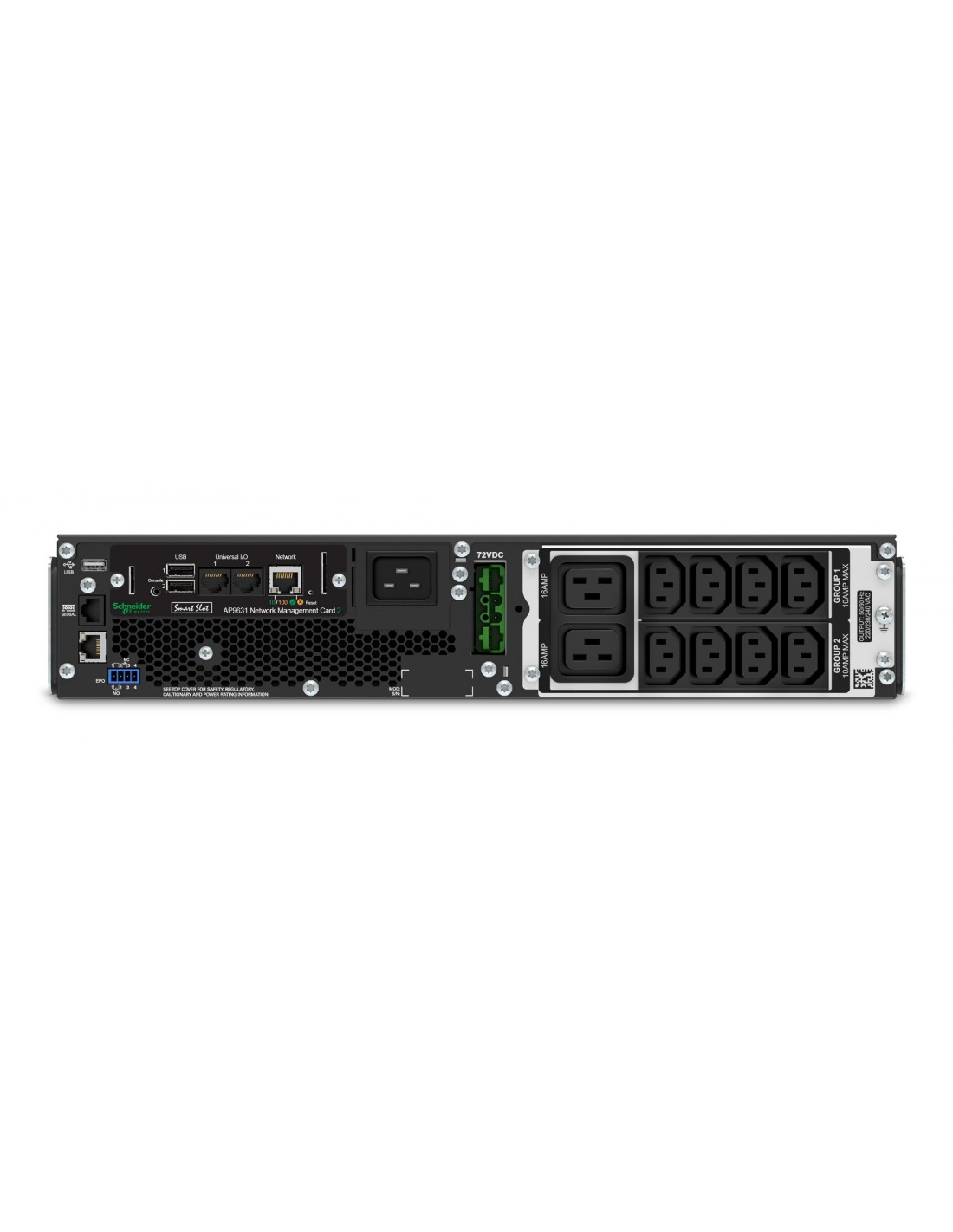 APC SRT2200RMXLI-NC. Topología UPS: Doble conversión (en línea), Capacidad de potencia de salida (VA): 2,2 kVA, Potencia de salida: 1980 W. Tipo de salida AC: C13 acoplador, C19 acoplador, Cantidad de salidas AC: 12 salidas AC, Tipo de serie de interfaz: RJ-45. Tecnología de batería: Sealed Lead Acid (VRLA), Capacidad de la batería: 367 VAh, Vida útil de la batería (máx.): 5 año(s). Factor de forma: Montaje en rack o Montaje en bastidor, Color del producto: Negro, Capacidad del rack: 2U. Ancho: 432 mm, Profundidad: 584 mm, Altura: 85 mm