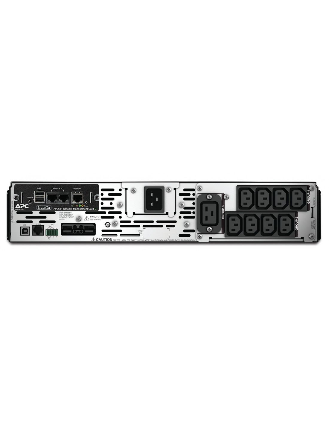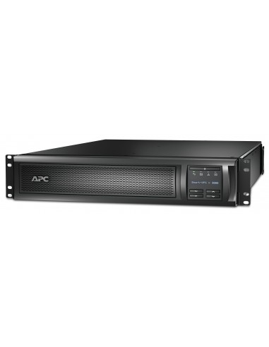 APC Smart-UPS. Topología UPS: Línea interactiva, Capacidad de potencia de salida (VA): 3 kVA, Potencia de salida: 2700 W. Tipo de salida AC: C13 acoplador, C19 acoplador, Conector: C20 acoplador, Cantidad de salidas AC: 9 salidas AC. Tecnología de batería: Sealed Lead Acid (VRLA), Capacidad de la batería: 738 VAh, Tiempo típico de respaldo a carga completa: 6,3 min. Factor de forma: Montaje en rack/Torre o Montaje en bastidor/Torre, Color del producto: Negro, Capacidad del rack: 2U. Ancho: 432 mm, Profundidad: 667 mm, Altura: 85 mm