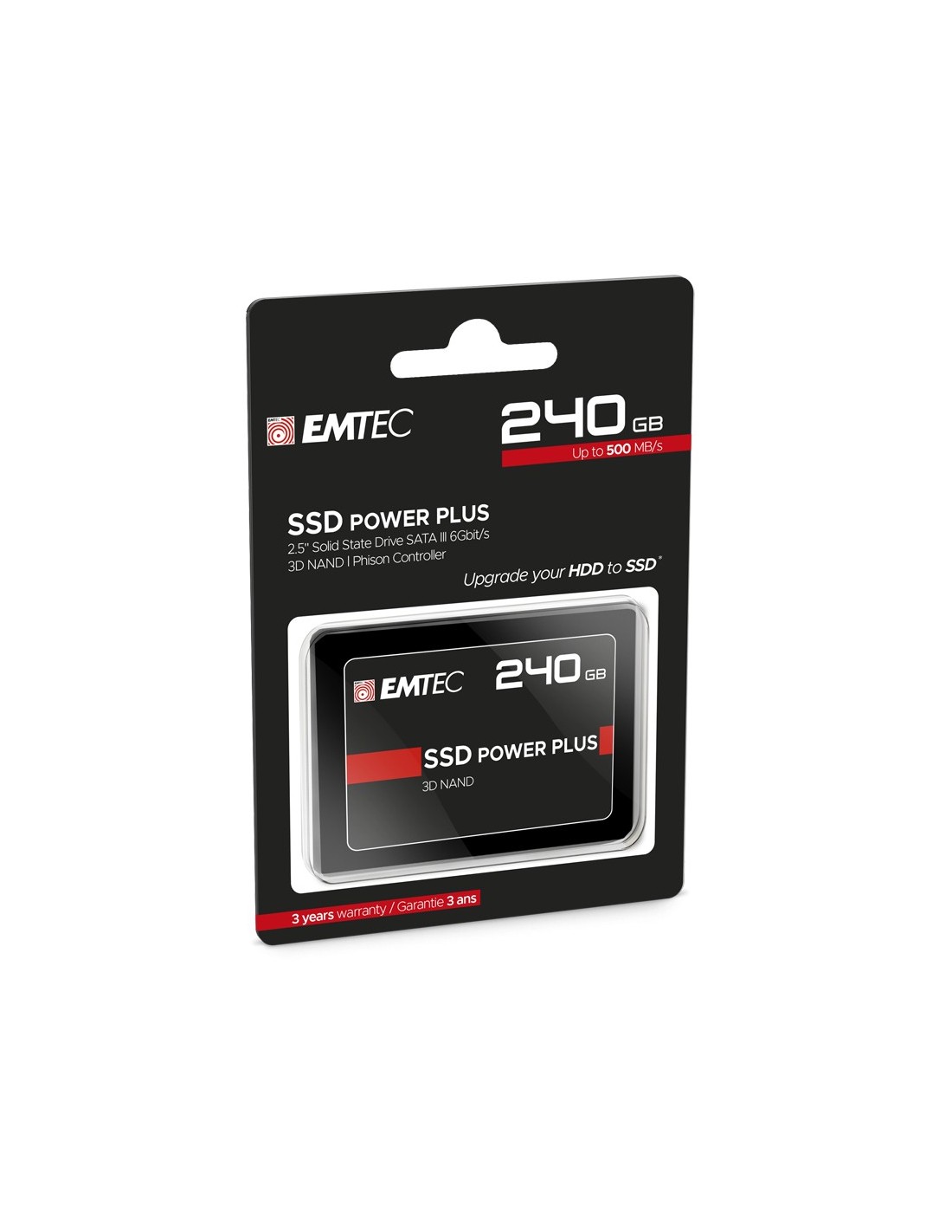 Emtec X150 Power Plus. SDD, capacidad: 240 GB, Factor de forma de disco SSD: 2.5", Velocidad de lectura: 520 MB/s, Velocidad de escritura: 500 MB/s, Velocidad de transferencia de datos: 6 Gbit/s, Componente para: PC
