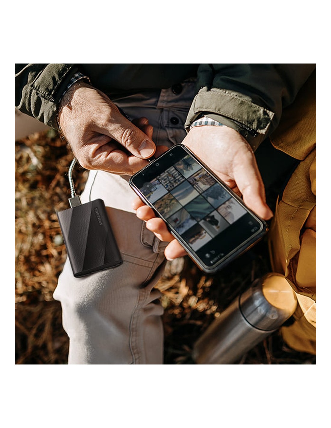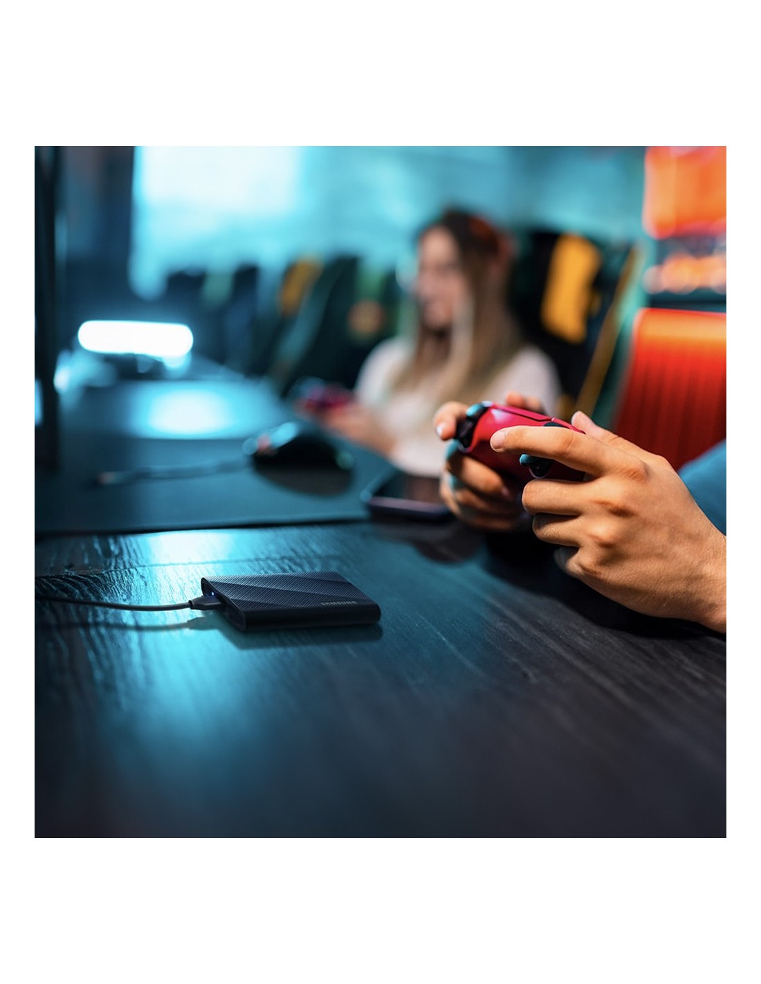 T9 está disponible en versiones de 1TB, 2TB y 4TB para ofrecerte mucho espacio de almacenamiento en un formato compacto y ligero de solo 122 g de peso. Gracias a su acabado rugoso y antideslizante, puedes llevarlo en la mano con total seguridad y comodidad.
