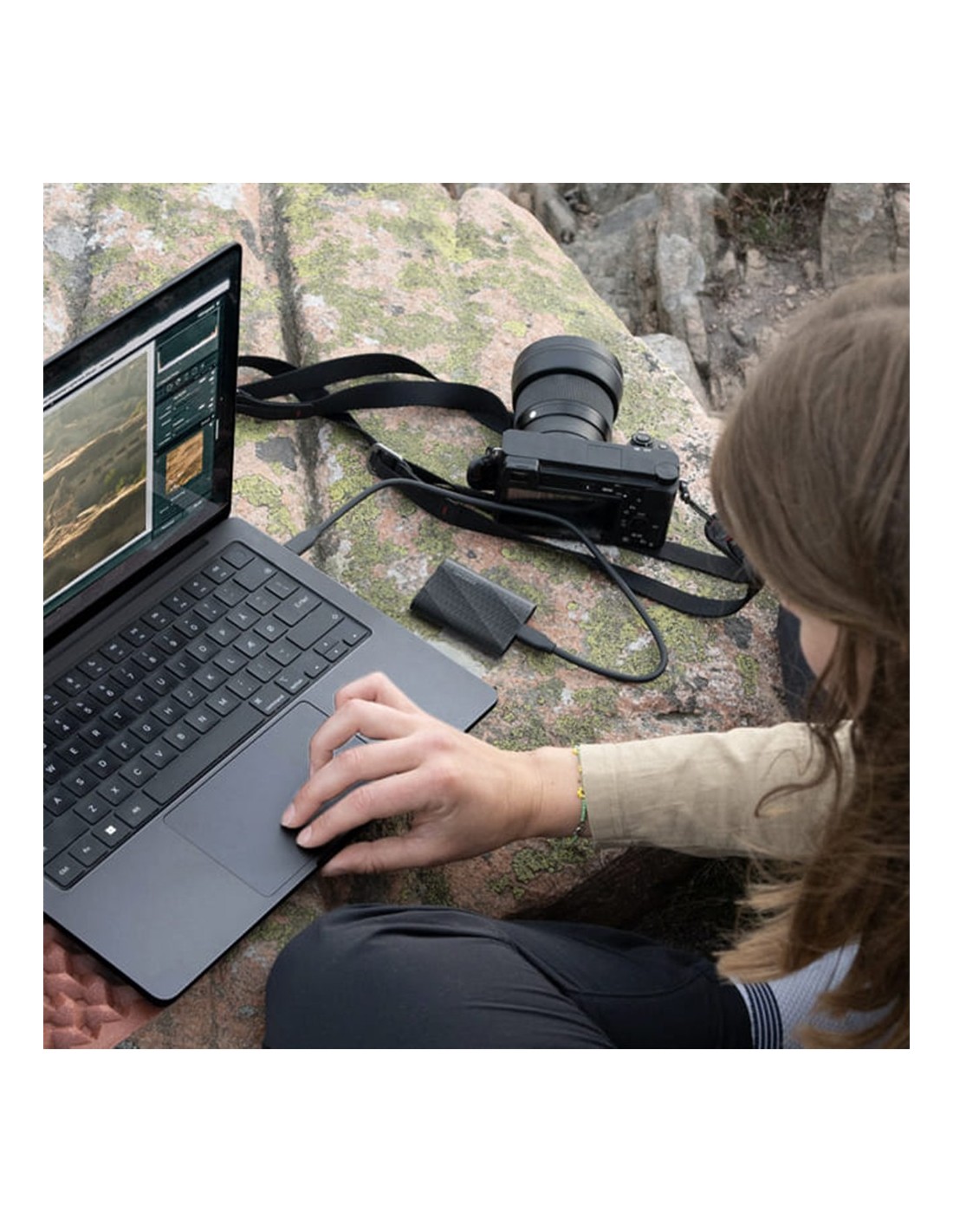 Sincroniza tus dispositivos y tu disco duro T9 a la perfección. T9 es compatible con Windows®, macOS®, teléfonos y tablets Android™, videoconsolas, cámaras 12K y mucho más. También incluye cables USB-C® a C y USB-C® a A para conectarlo fácilmente.