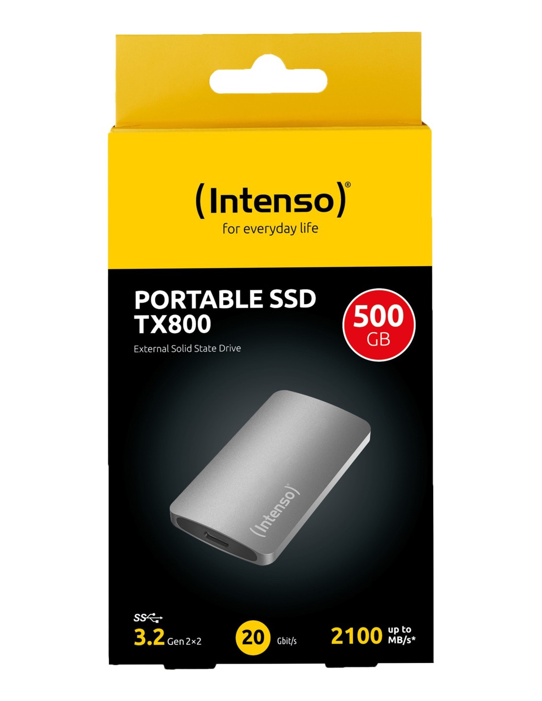 Intenso TX800. SDD, capacidad: 500 GB. Conector USB: USB Tipo C, Versión USB: USB 3.2 Gen 2x2, Velocidad de transferencia de datos: 2,1 Gbit/s. Color del producto: Antracita