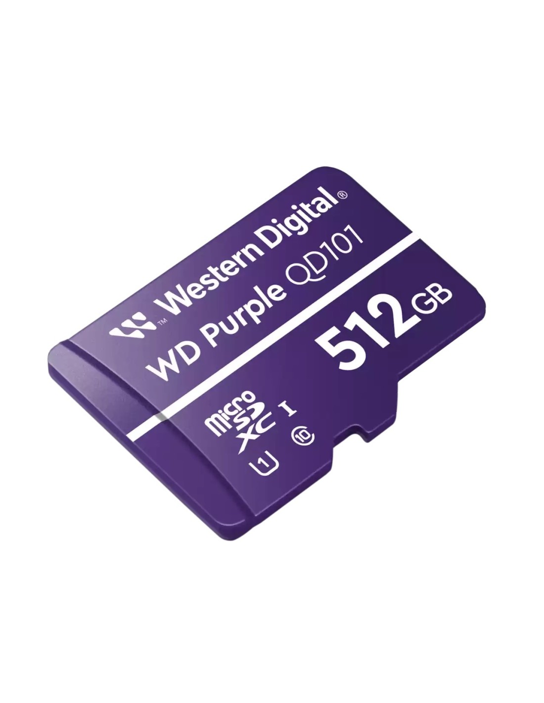 SanDisk WD Purple SC QD101. Capacidad: 512 GB, Tipo de tarjeta flash: MicroSDXC, Clase de memoria flash: Clase 10, Clase de velocidad UHS: Class 1 (U1). Color del producto: Púrpura