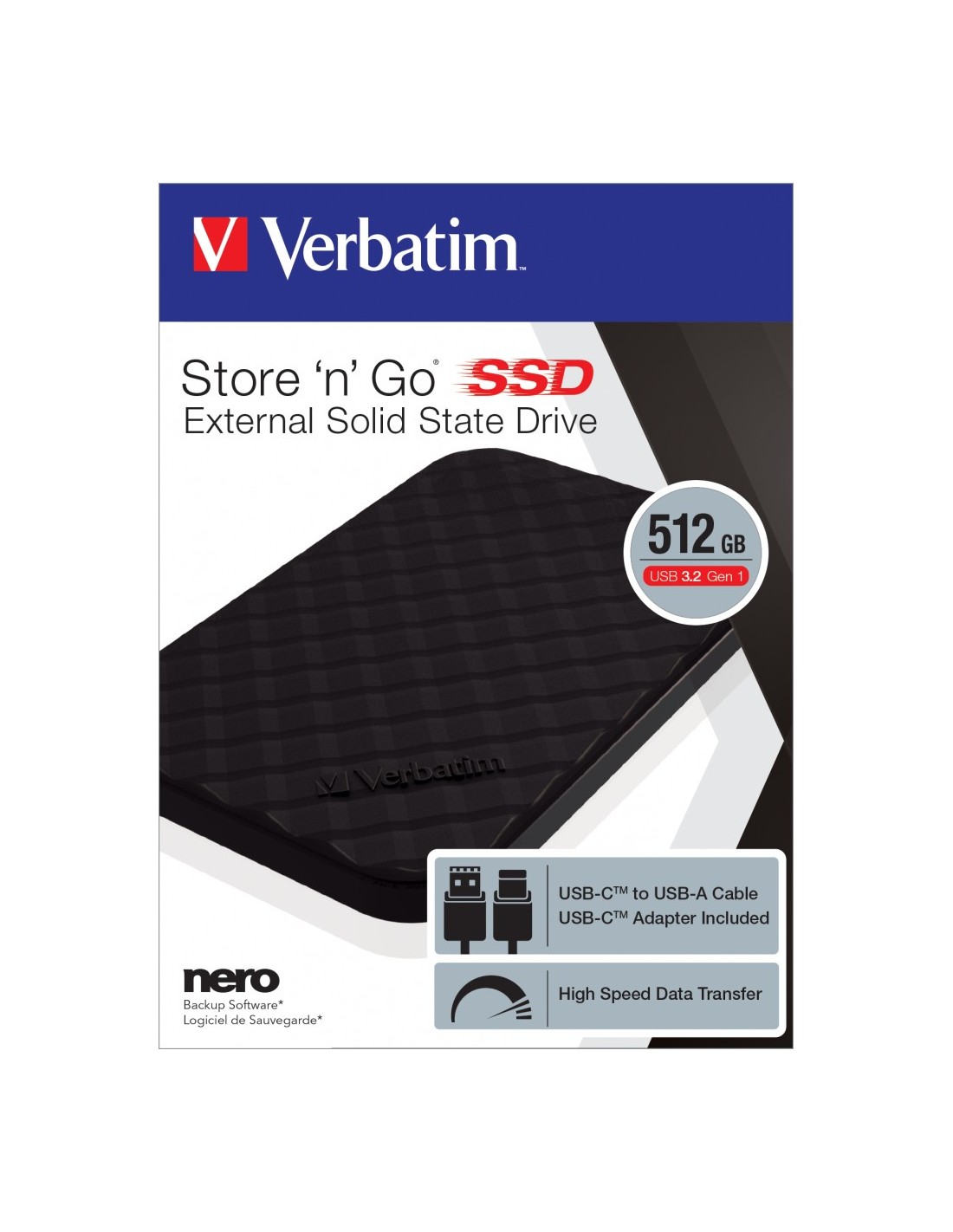 Verbatim SSD Store 'n' Go portátil USB 3.2 GEN 1 de 512 GB. SDD, capacidad: 512 GB. Conector USB: USB Tipo C, Versión USB: 3.2 Gen 1 (3.1 Gen 1). Color del producto: Negro