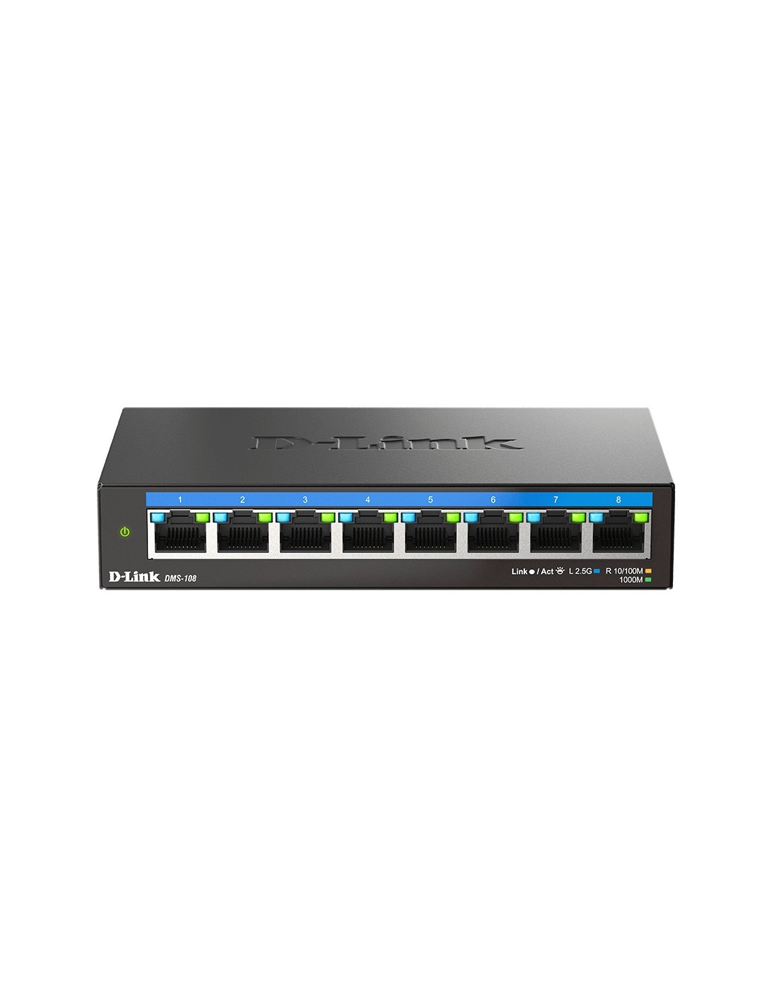 D-Link DMS-108. Tipo de interruptor: No administrado, Capa del interruptor: L2. Puertos tipo básico de conmutación RJ-45 Ethernet: 2.5G Ethernet (100/1000/2500), Cantidad de puertos básicos de conmutación RJ-45 Ethernet: 8. Tabla de direcciones MAC: 4000 entradas, Capacidad de conmutación: 40 Gbit/s. Estándares de red: IEEE 802.1p, IEEE 802.3, IEEE 802.3ab, IEEE 802.3az, IEEE 802.3bz, IEEE 802.3u, IEEE 802.3x. Voltaje de entrada DC: 12 V