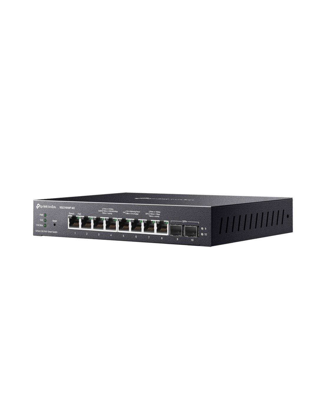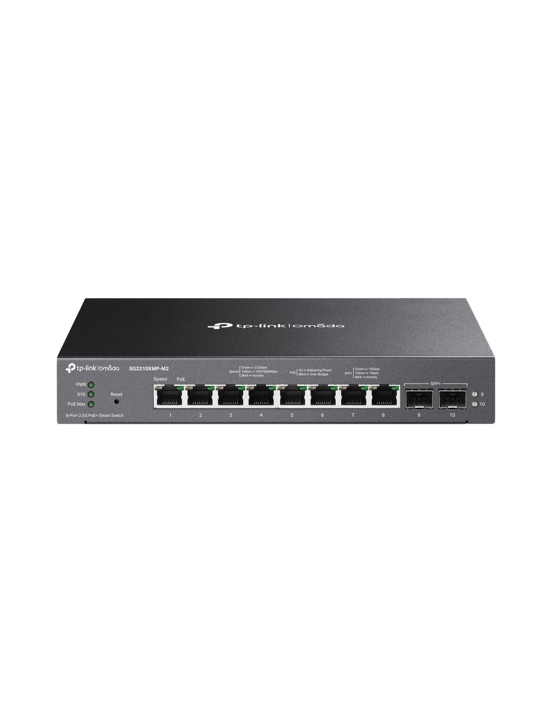 TP-Link Omada SG2210XMP-M2. Tipo de interruptor: Gestionado, Capa del interruptor: L2/L2+. Puertos tipo básico de conmutación RJ-45 Ethernet: 2.5G Ethernet (100/1000/2500), Cantidad de puertos básicos de conmutación RJ-45 Ethernet: 8. Tabla de direcciones MAC: 16000 entradas, Capacidad de conmutación: 80 Gbit/s. Estándares de red: IEEE 802.1Q, IEEE 802.1ab, IEEE 802.1p, IEEE 802.3x. Conector eléctrico: AC/DC. Energía sobre Ethernet (PoE). Montaje de pared, Montaje en rack