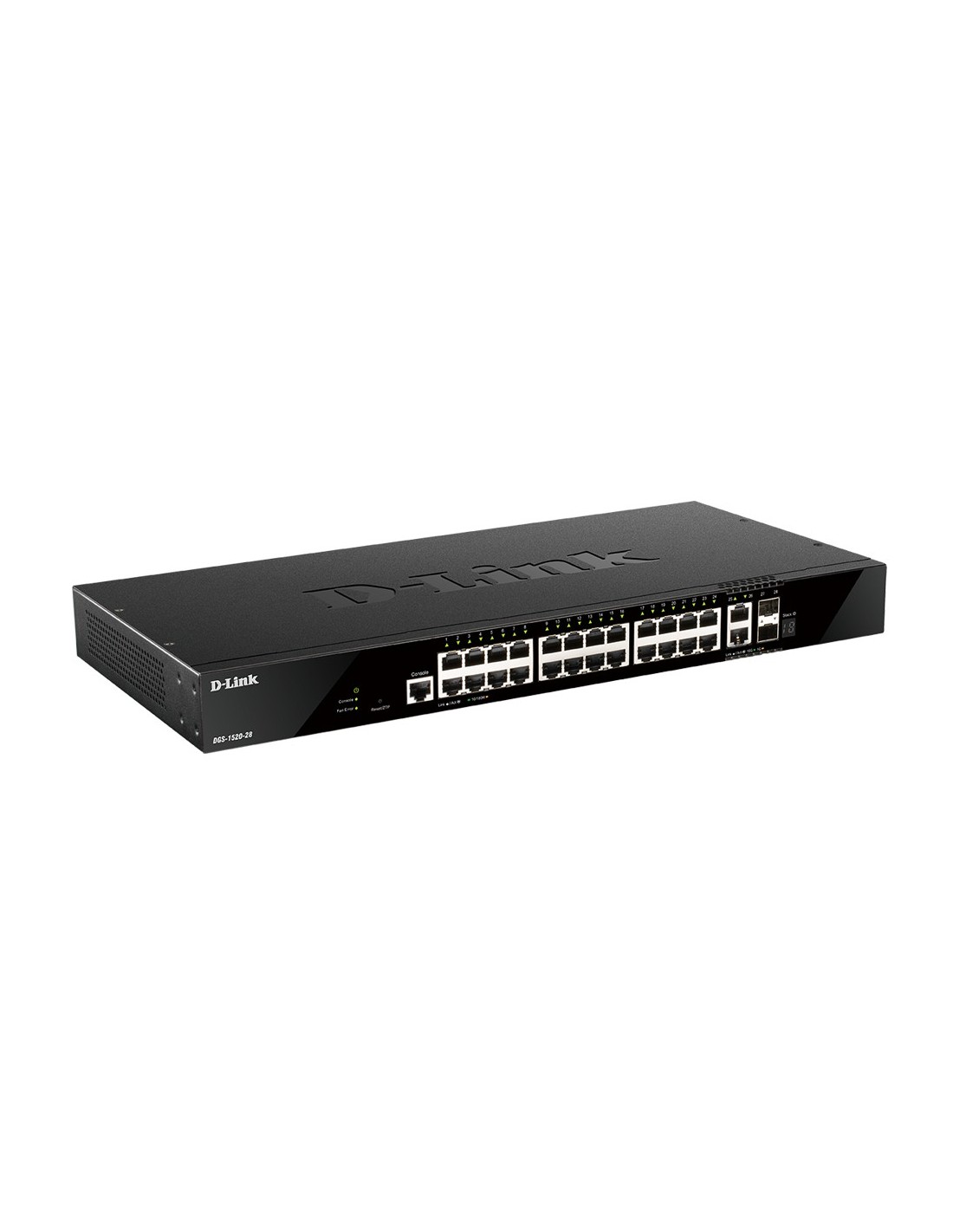 D-Link DGS-1520-28. Tipo de interruptor: Gestionado, Capa del interruptor: L3. Puertos tipo básico de conmutación RJ-45 Ethernet: 10G Ethernet (100/1000/10000), Cantidad de puertos básicos de conmutación RJ-45 Ethernet: 26. Tabla de direcciones MAC: 16384 entradas, Capacidad de conmutación: 128 Gbit/s. Estándares de red: IEEE 802.3, IEEE 802.3ab, IEEE 802.3ae, IEEE 802.3af, IEEE 802.3at, IEEE 802.3az, IEEE 802.3bz,.... Montaje en rack, Factor de forma: 1U